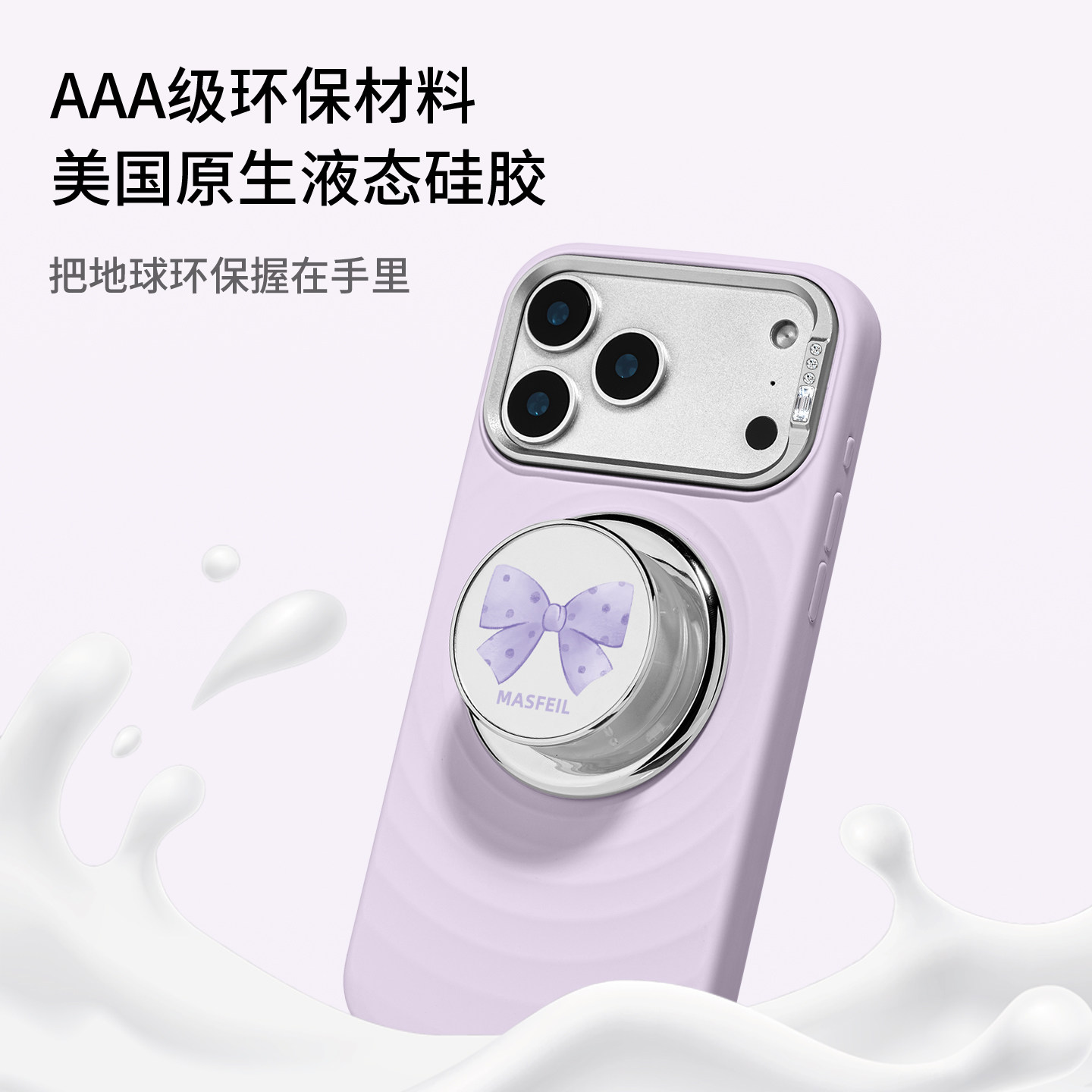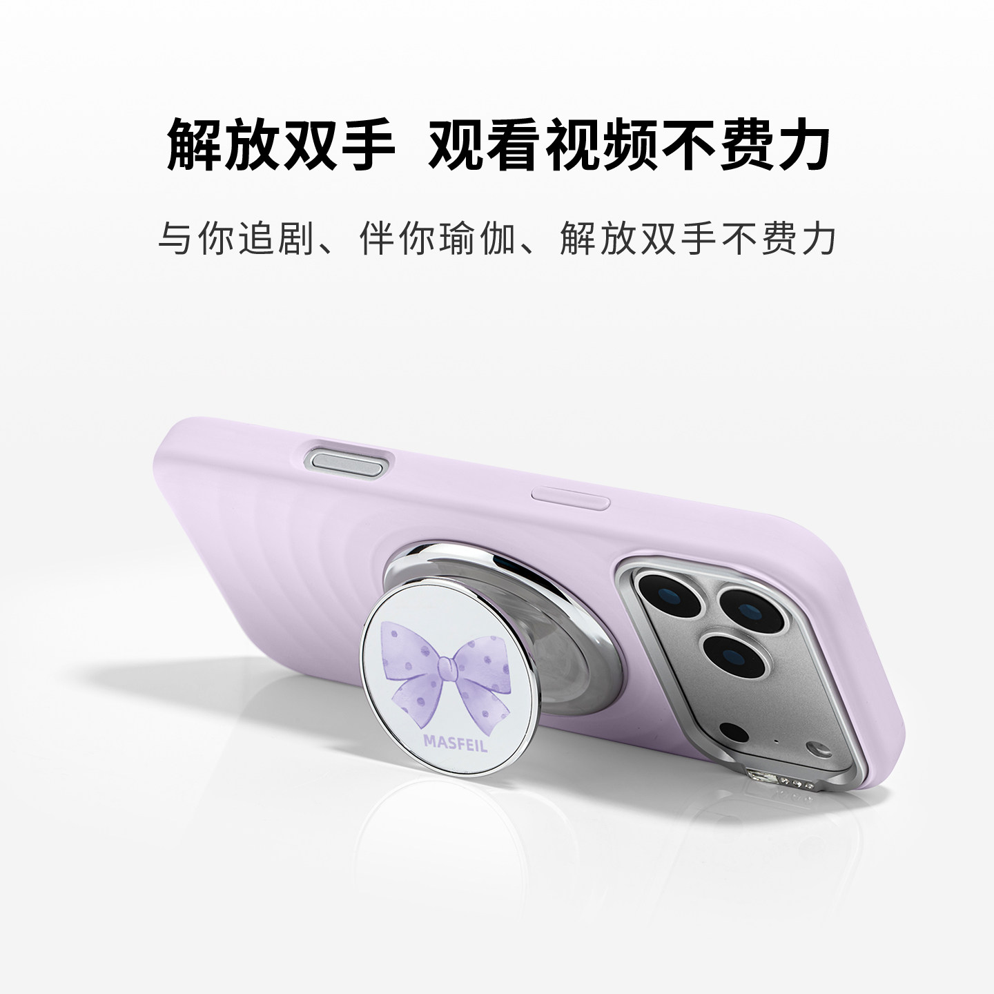 MASFEIL × 紫色蝴蝶结适用iPhone17Promax手机壳新款磁吸带支架苹果17Pro全包保护套液态硅胶Zo7高级感简约