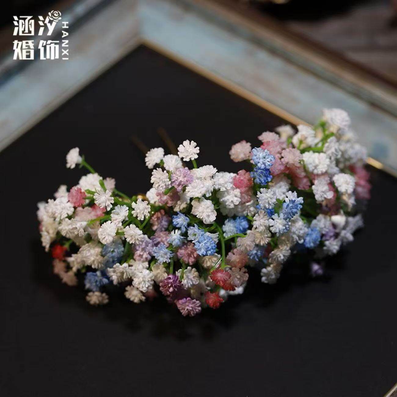 2025新款刘亦菲同款满天星仿真花发饰晚宴公主风头饰发簪发钗