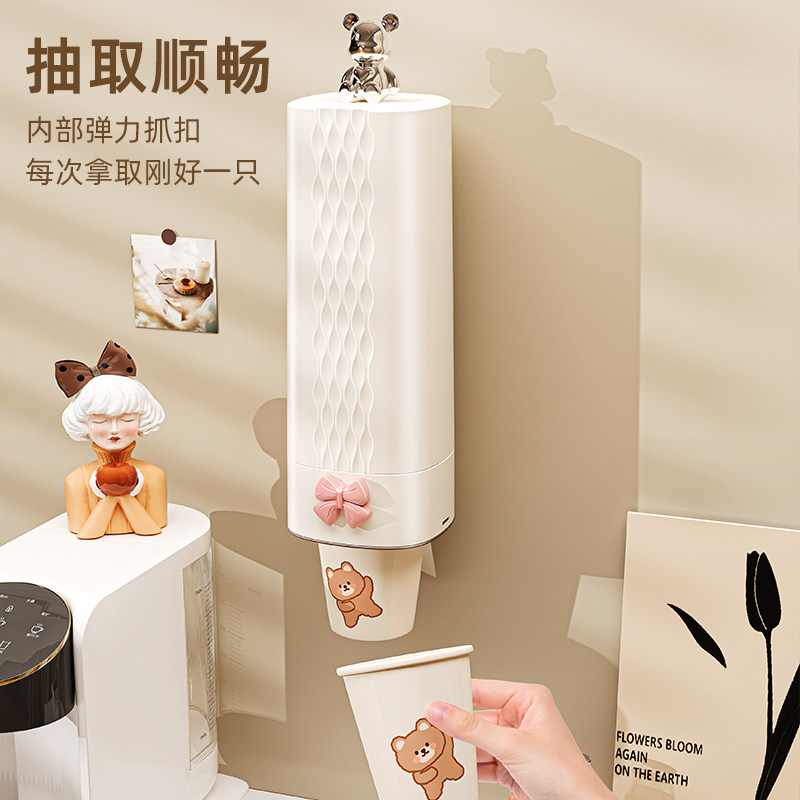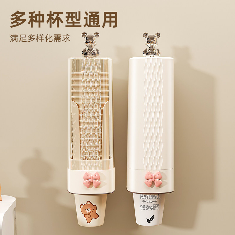 一次性杯子挂架自动取杯器家用挂壁式纸杯架创意水杯收纳家用架子