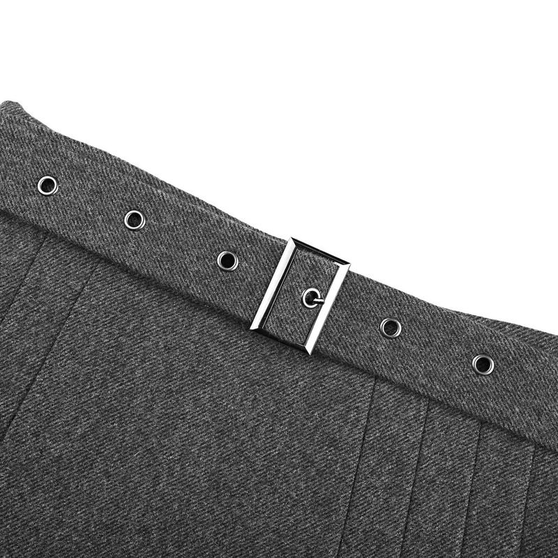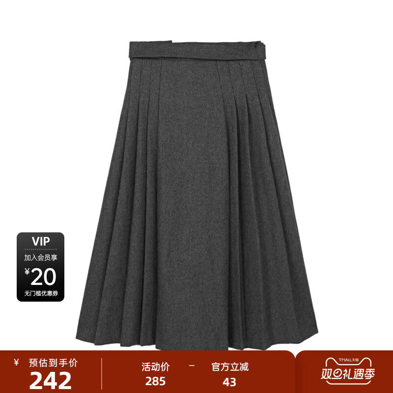 MJ STYLE灰色百褶西装裙女秋冬半身裙高腰休闲大摆a字过膝中长裙