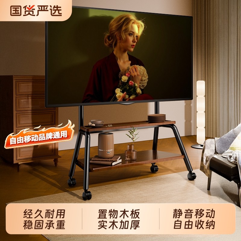 电视机落地支架可移动不锈钢带轮推车55/65/75寸通用挂架电视柜
