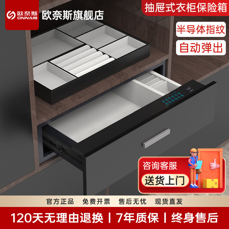 欧奈斯保险柜家用小型抽屉入衣柜防盗隐形抽屉式嵌入式保险箱全钢指纹密码办公室桌下定制自动保管箱
