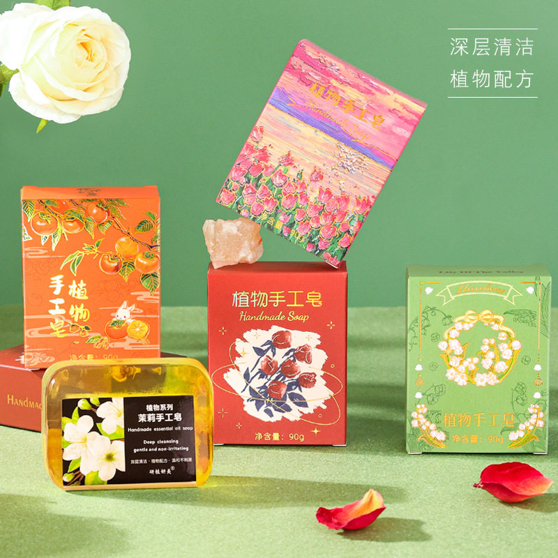 跨境专供植物系列玫瑰茉莉系列精油皂洁面保湿控油沐浴手工 皂批