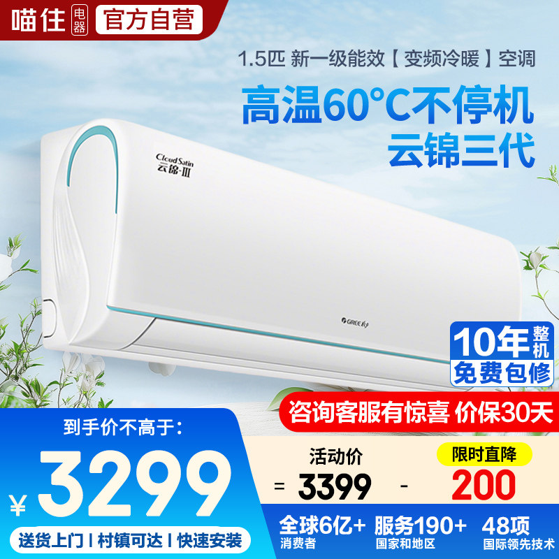 格力空调云锦三代1.5匹新一级能效省电变频冷暖 冷酷外机卧室挂机