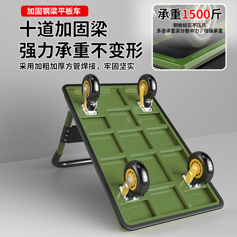 钢板小推车可折叠轻便搬运拉货平板手推车家用取快递便携手拉拖车