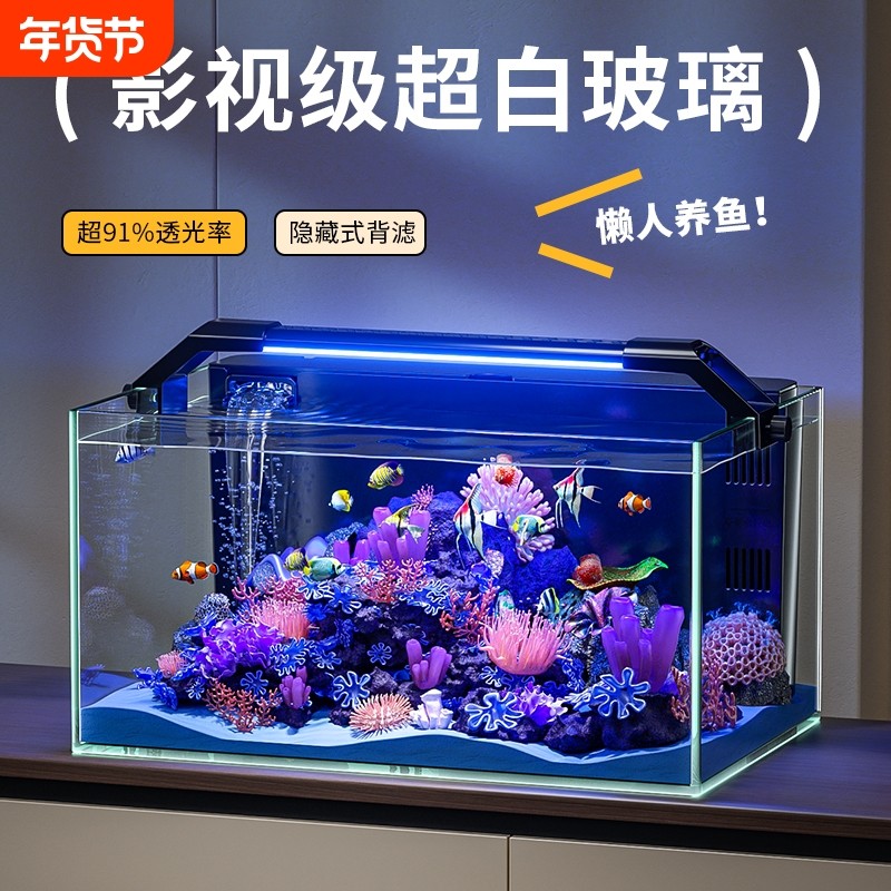 金晶新款玻璃鱼缸过滤制氧一体机2025超白背滤循环金鱼家用造景缸