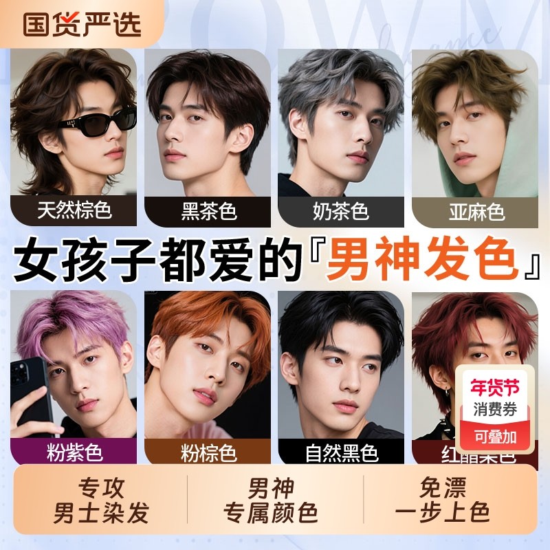 染发膏男士专用泡泡染发剂不沾头皮纯植物正品牌官方旗舰店黑茶色