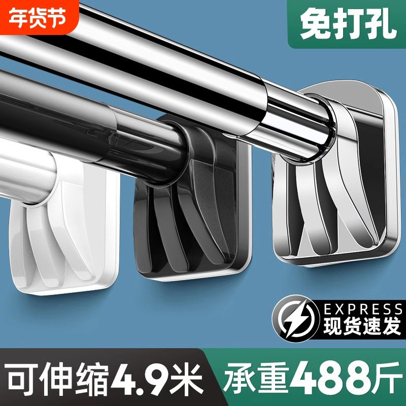 免打孔伸缩杆晾衣杆阳台晾衣架支撑挂衣杆窗帘杆卫生间升缩浴帘杆