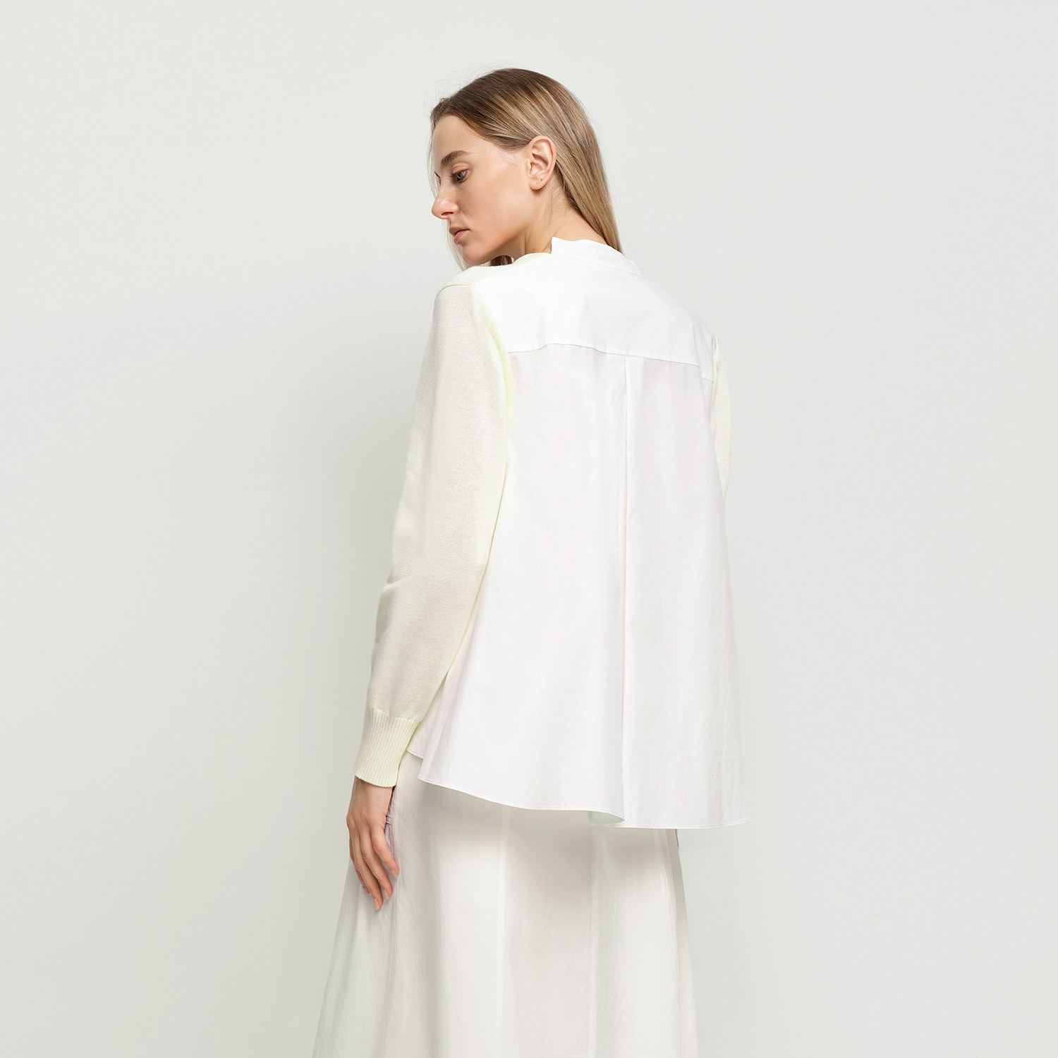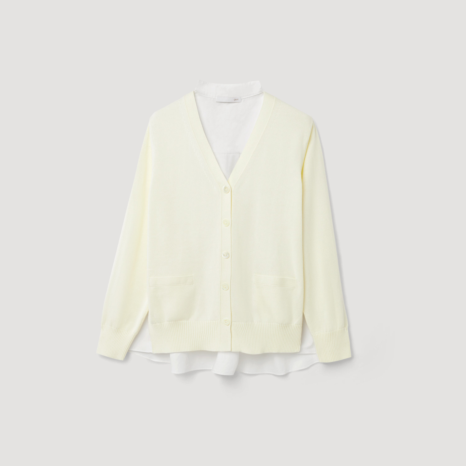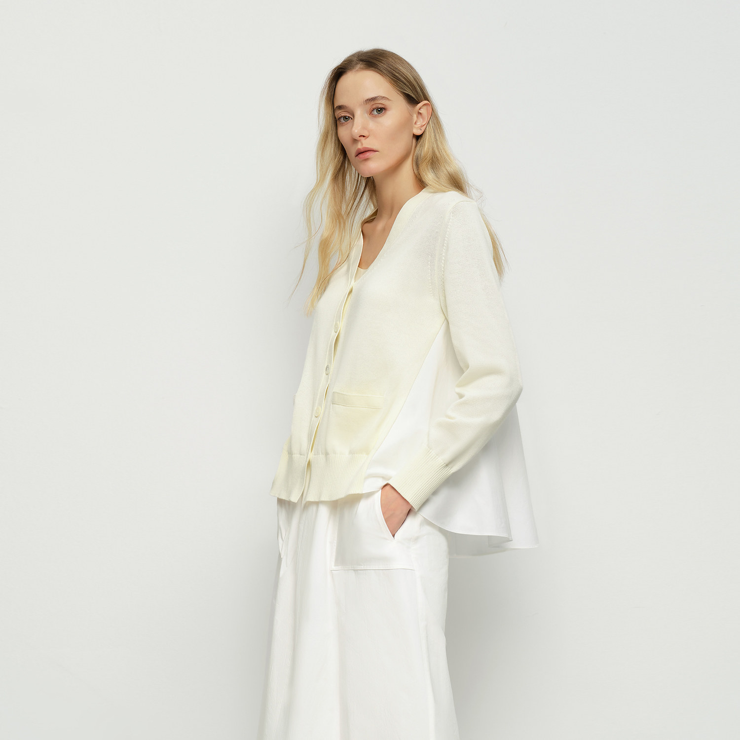OVV2025春夏新款女装淡人针梭镶拼优雅舒适V领针织开衫外套