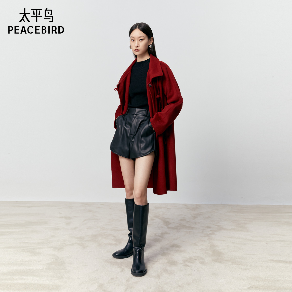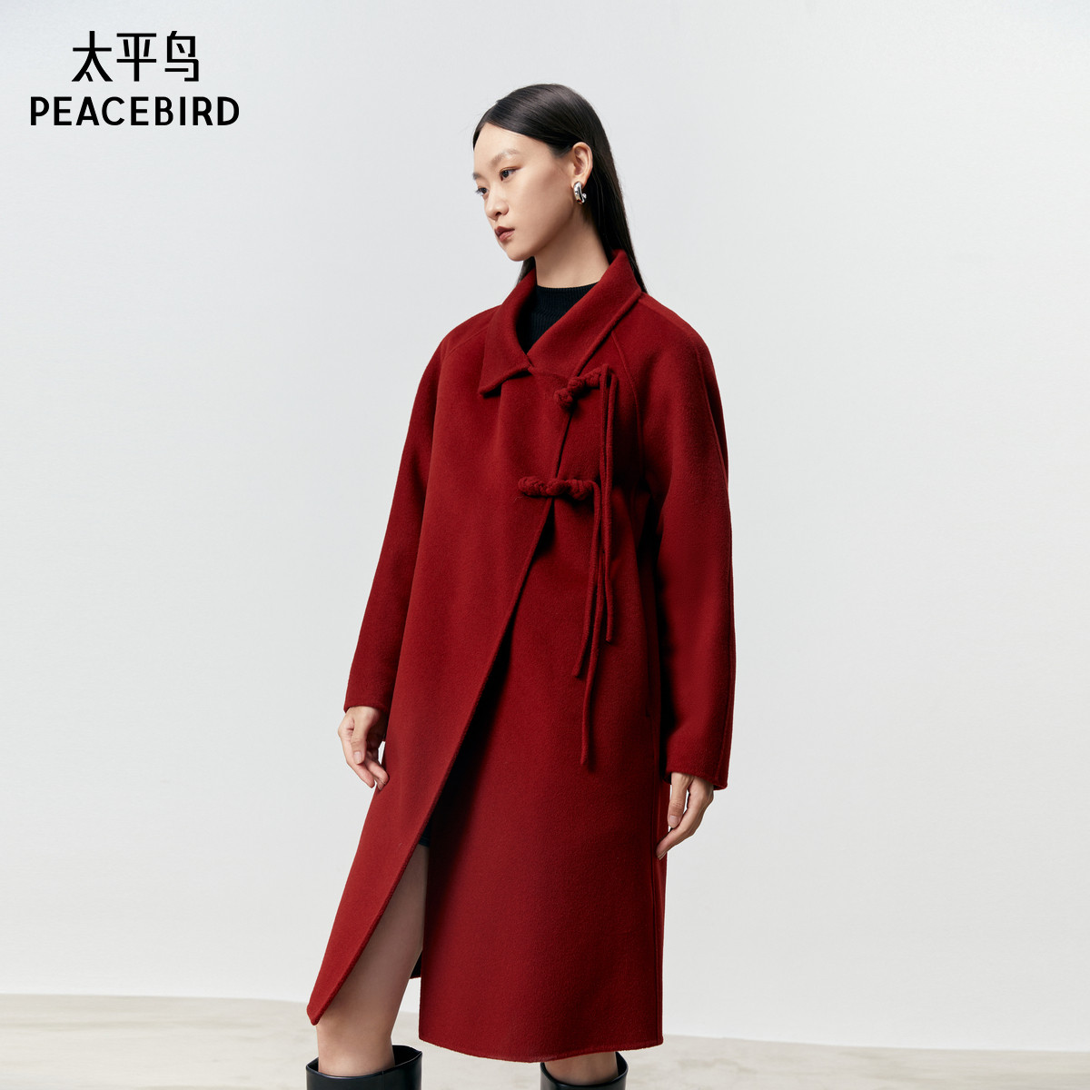 太平鸟女装2024冬季新款新中式双面呢大衣A1AAD4326