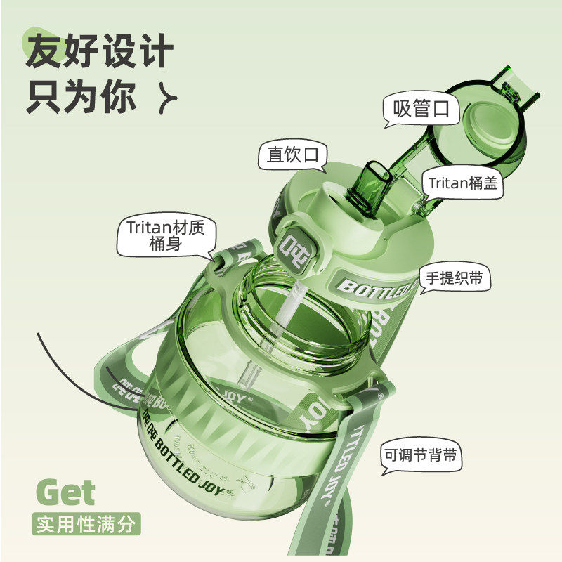 日本tritan水杯大容量2000ml男女学生夏耐高温高颜值吸管便携水壶