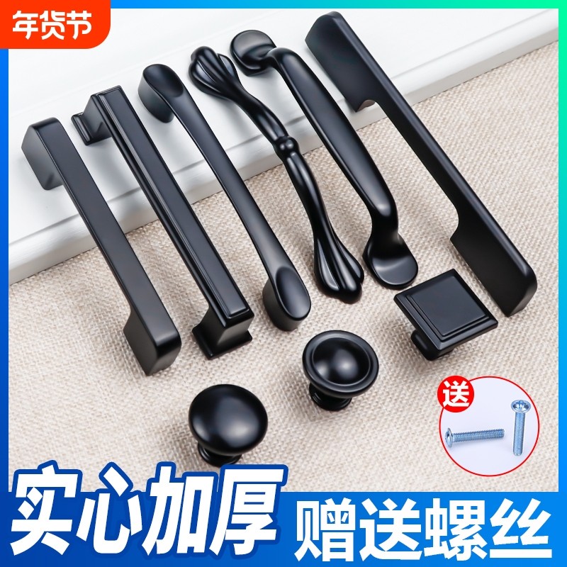 雷启美式黑色衣柜门加长拉手现代简约长条整体橱柜鞋柜子超长门把