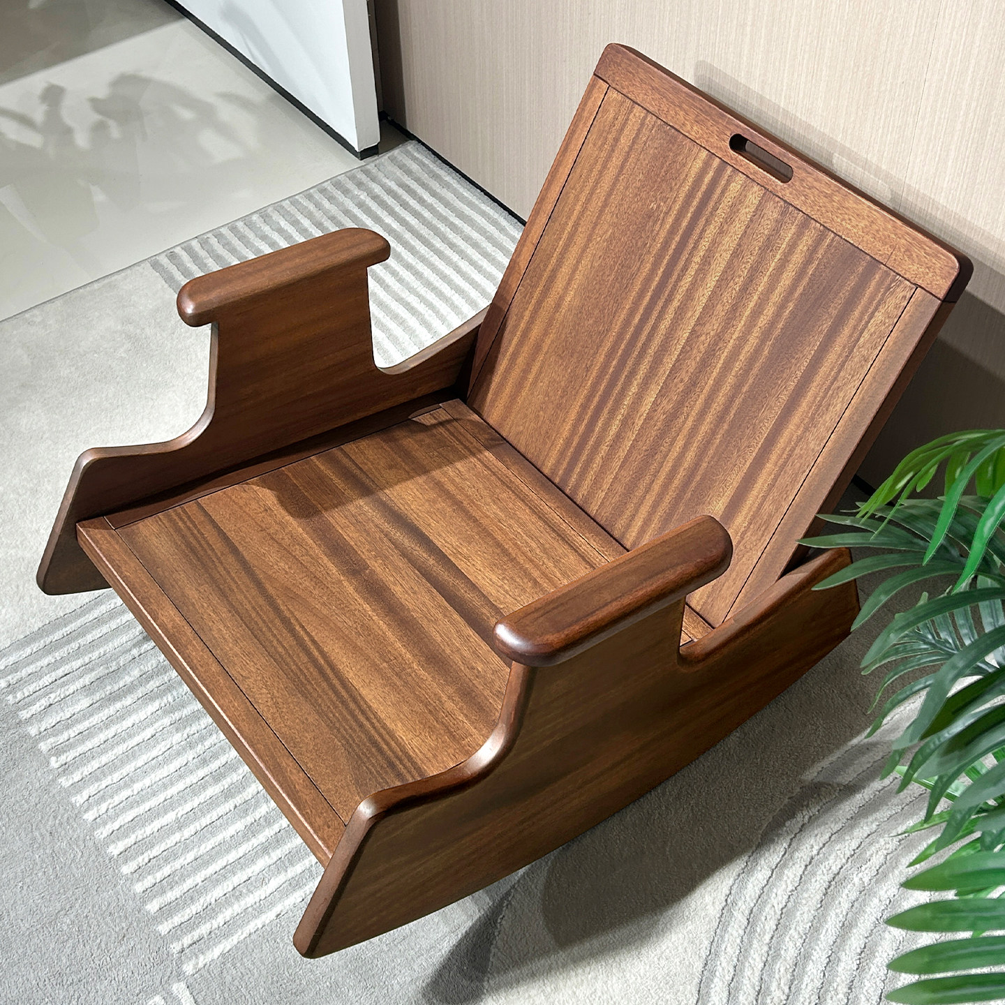 核桃木摇摇椅全实木客厅家用单人沙发椅现代懒人阳台大人休闲躺椅