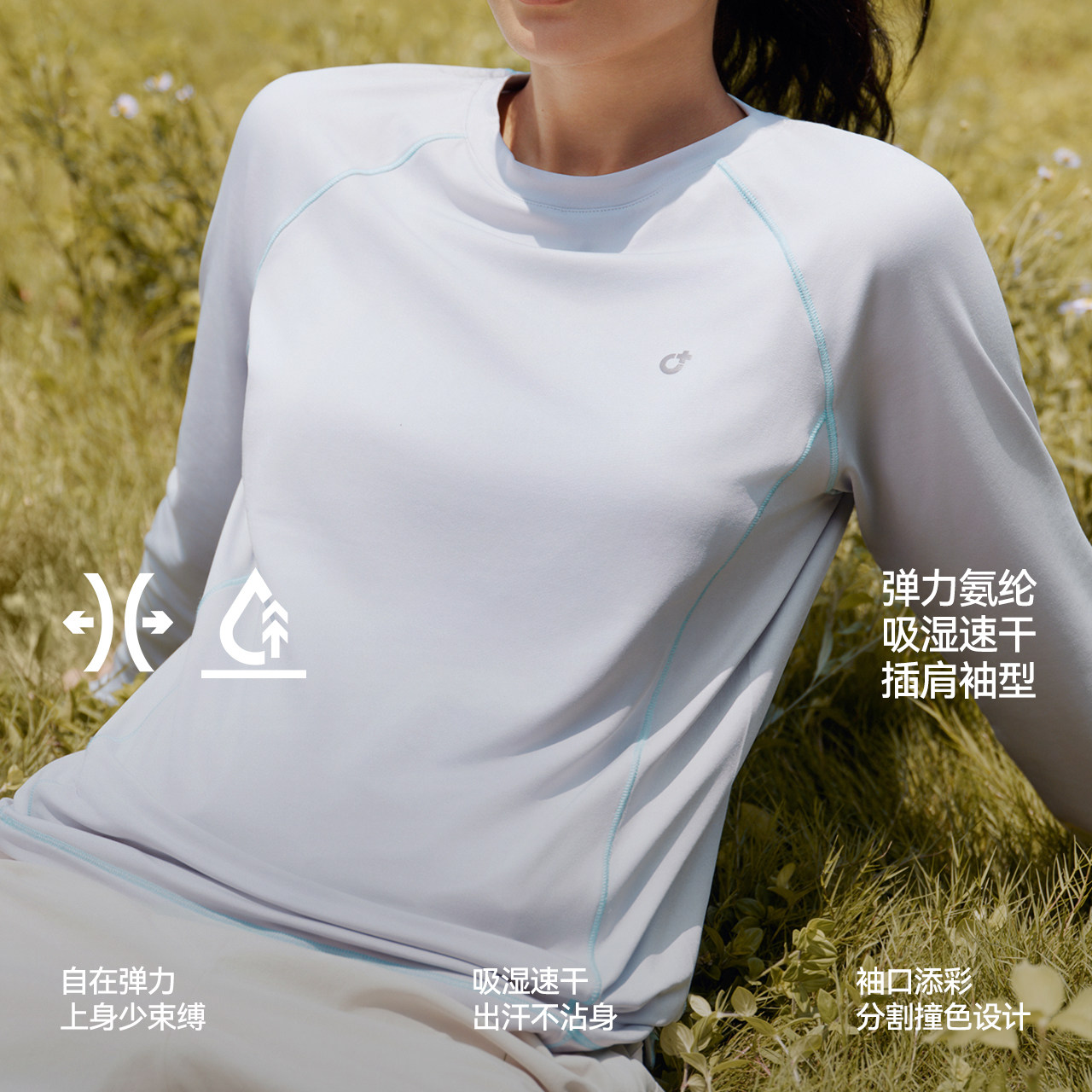 森马长袖T恤女吸湿速干分割户外冬季2025新款插肩袖抓绒上衣潮流