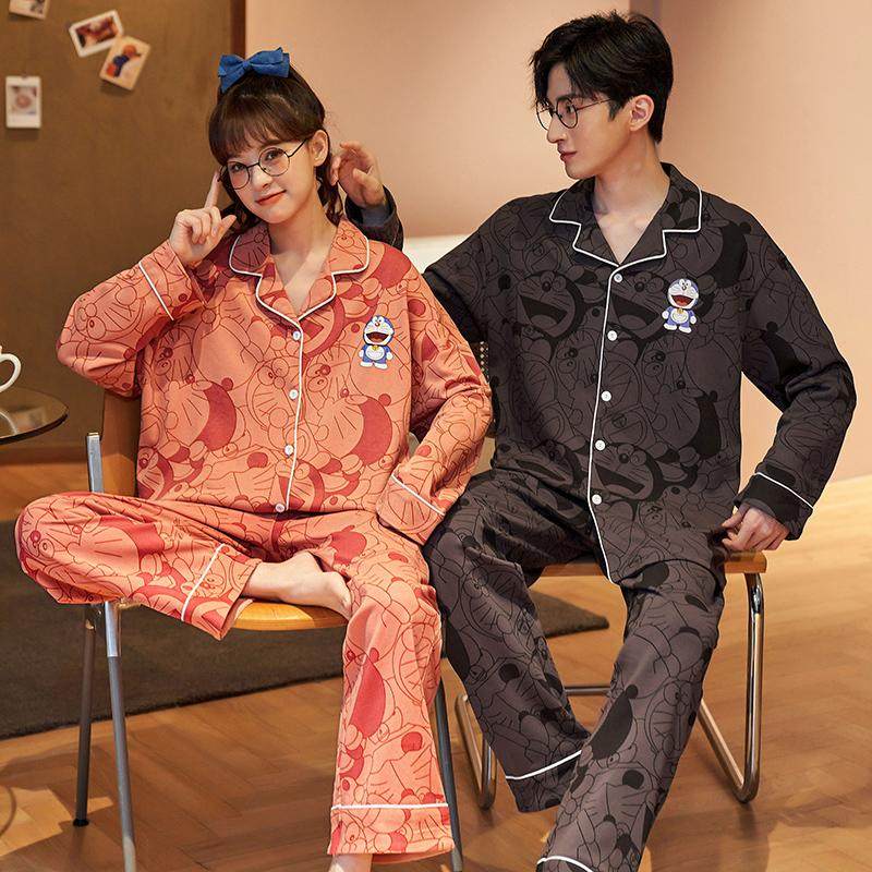 安比斯情侣睡衣舒适纯棉秋季女长袖男女同款休闲家居服套装可出门