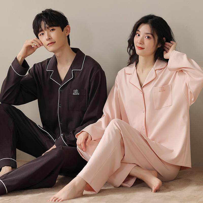 帕兰朵情侣睡衣女秋冬季纯棉长袖男士加肥加大码高级感家居服开衫