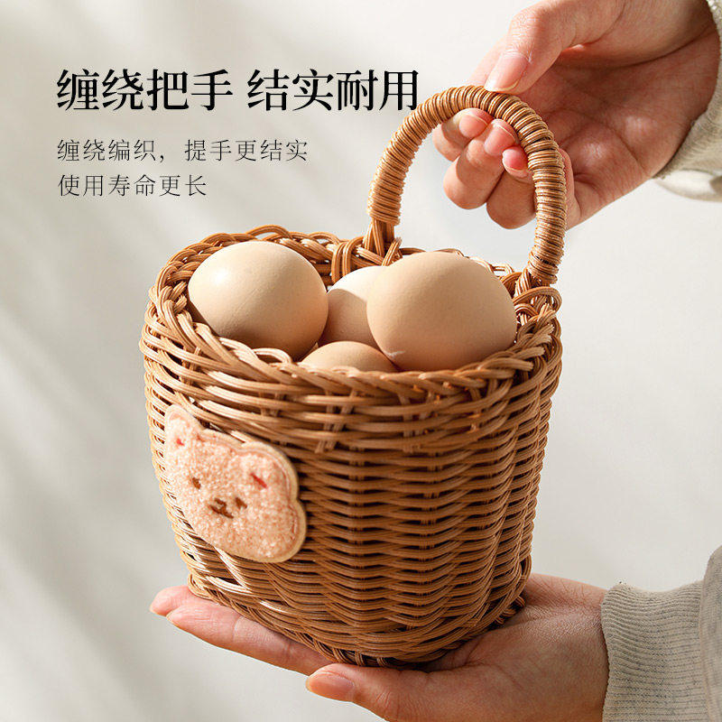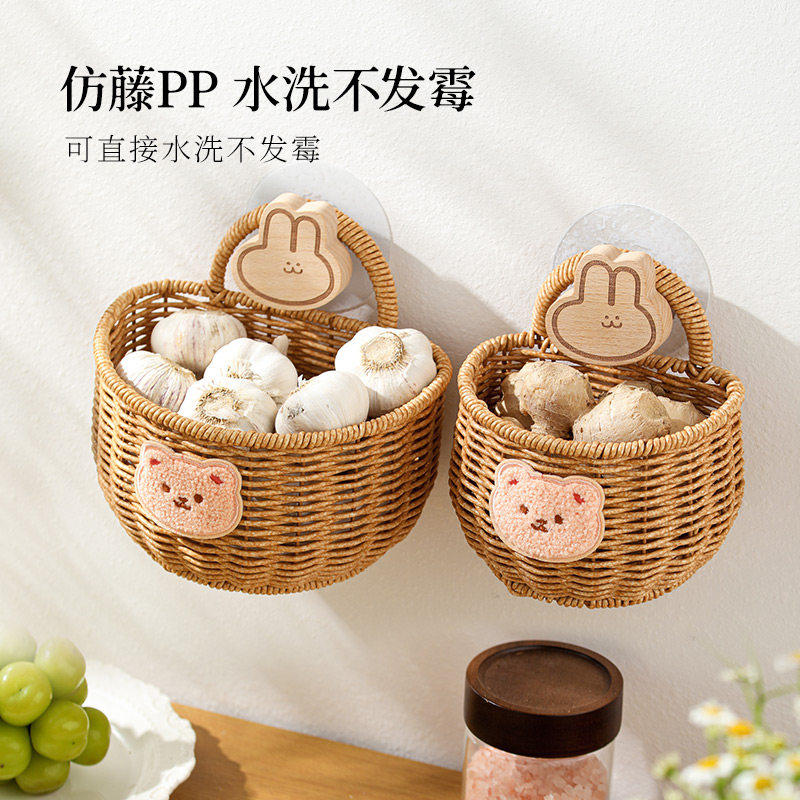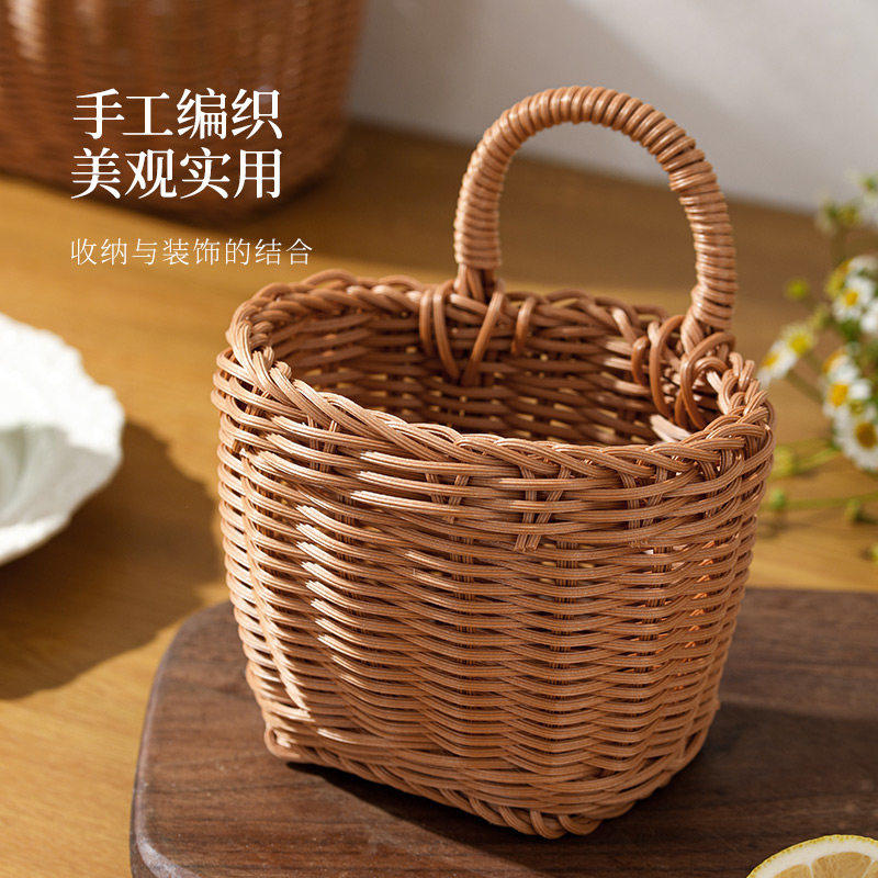 Kens北欧编织篮厨房姜蒜收纳筐复古壁挂篮手提小花篮厨具挂篮