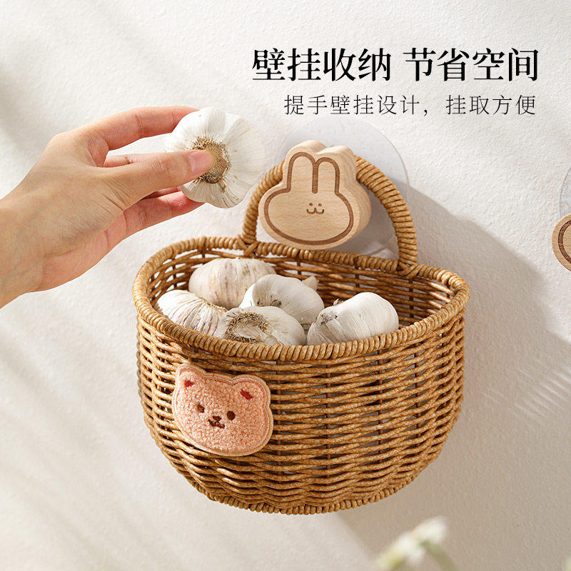 姜蒜收纳筐厨房放葱姜大蒜竹编壁挂篮子手提编织小花篮藤编挂篮