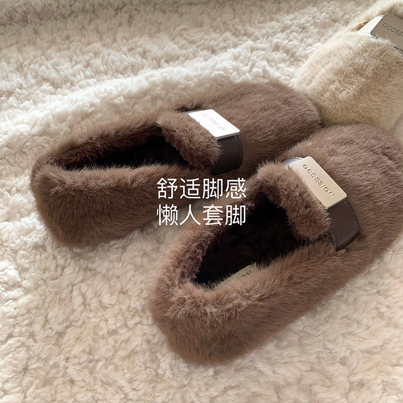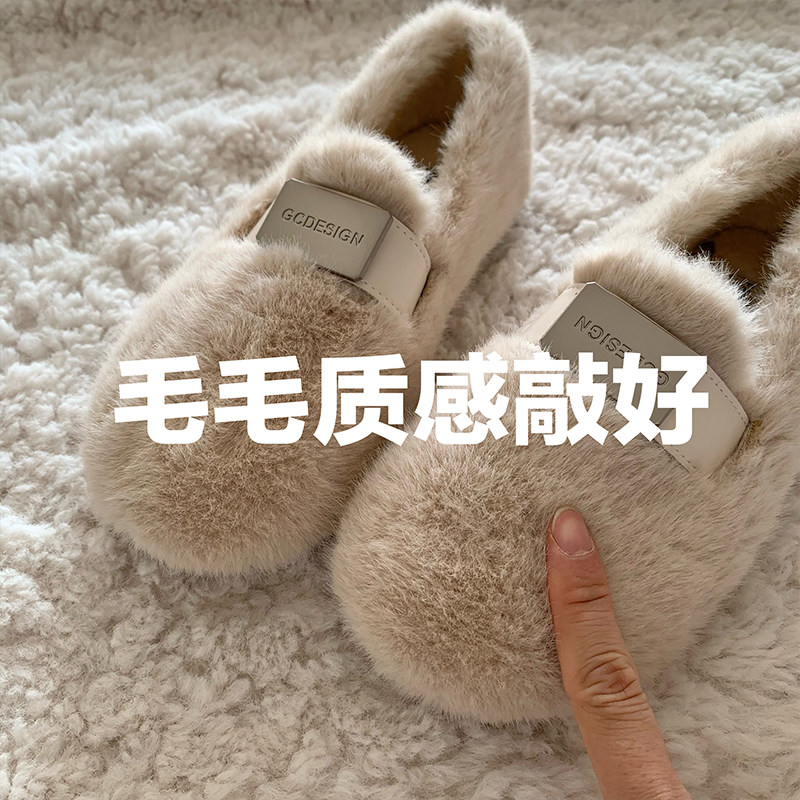 加州野兔~INS温柔气质毛毛鞋女冬外穿保暖加绒一脚蹬棉鞋豆豆鞋女