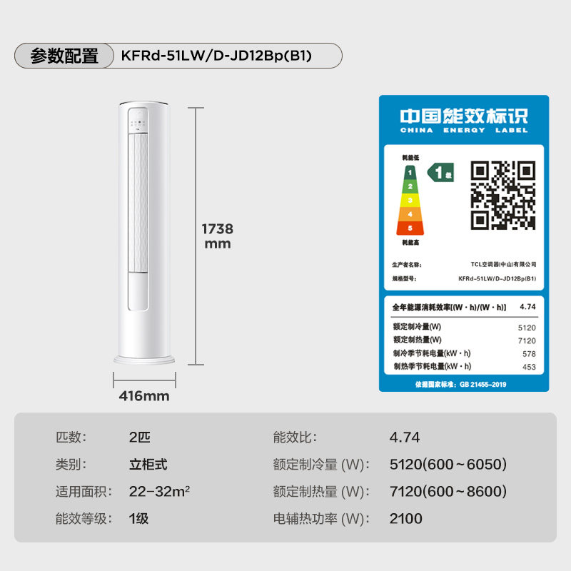 TCL空调2匹立式柜机新一级能效变频省电家用客厅以旧换新补贴 340