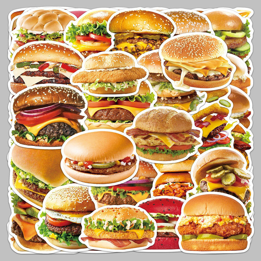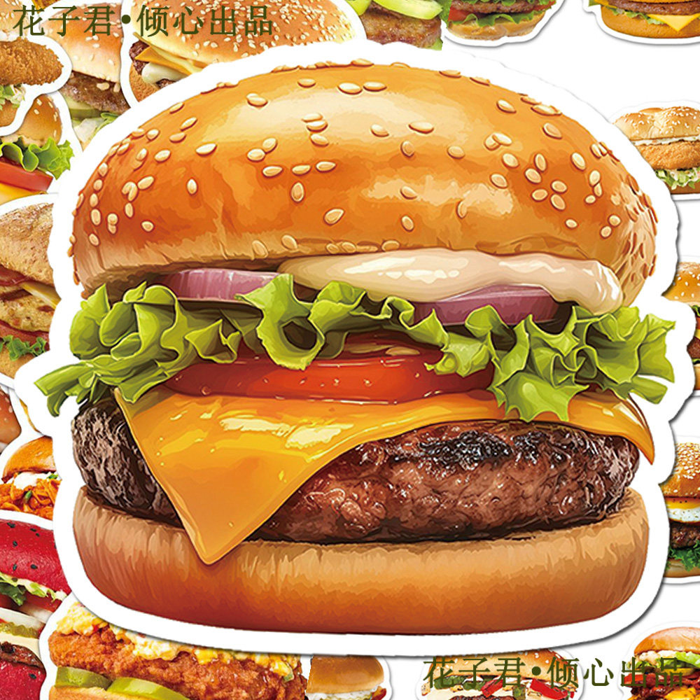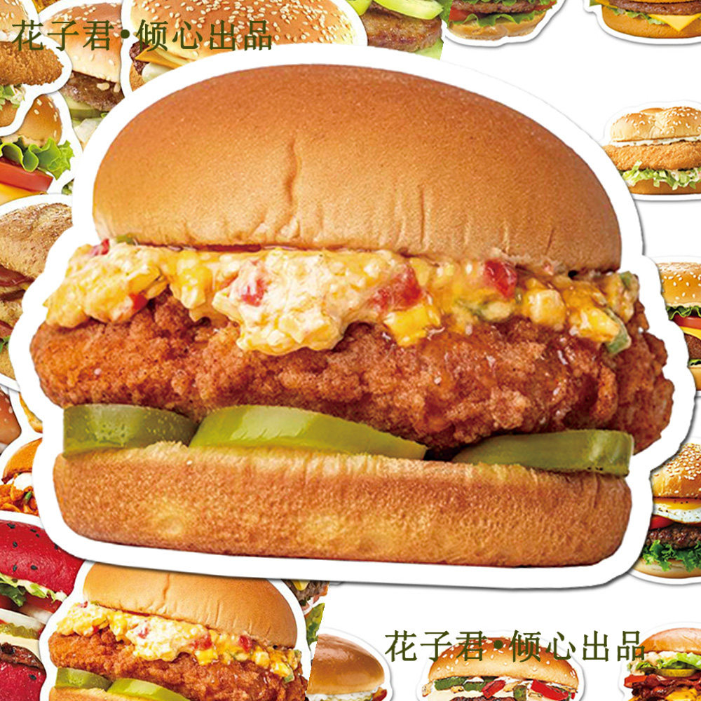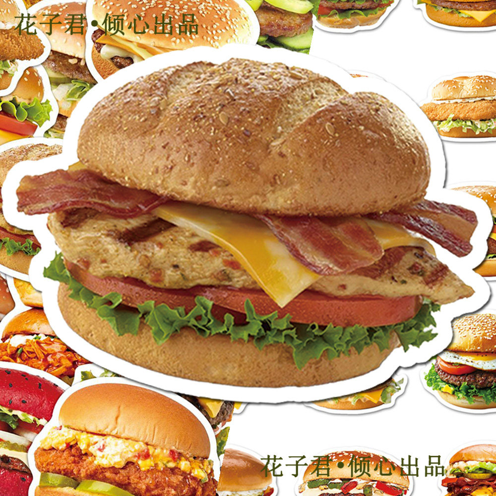 100张美味汉堡贴纸ins风韩系高颜值食物鸡腿堡牛肉堡美食桌面贴画
