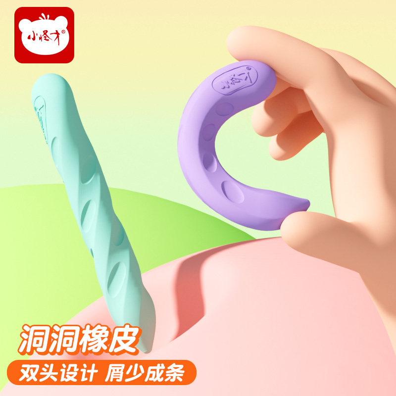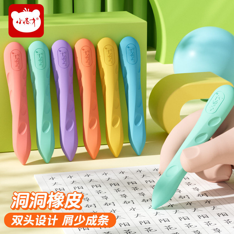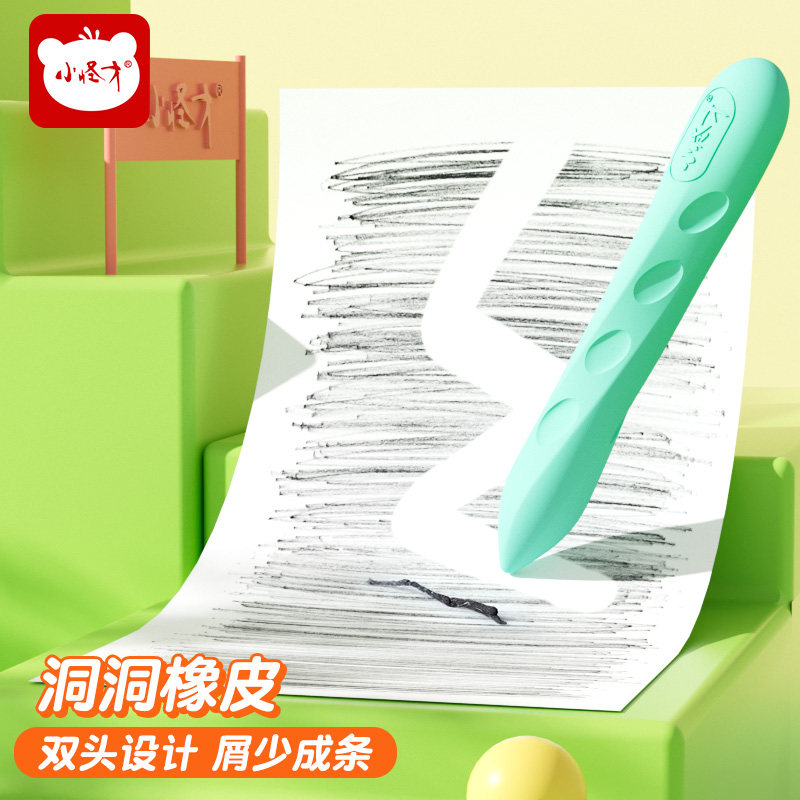 小怪才擦得干净小学生专用洞洞橡皮擦幼儿园安全无毒不留痕象皮少屑不留痕铅笔橡皮无屑干净2b橡皮笔形橡皮
