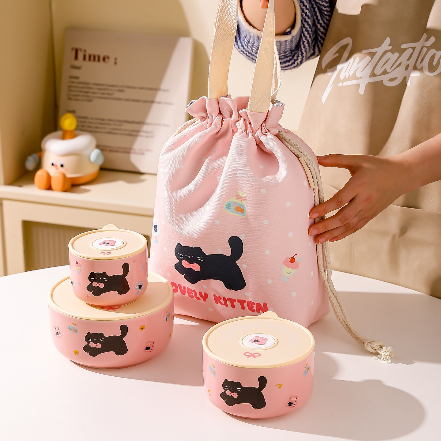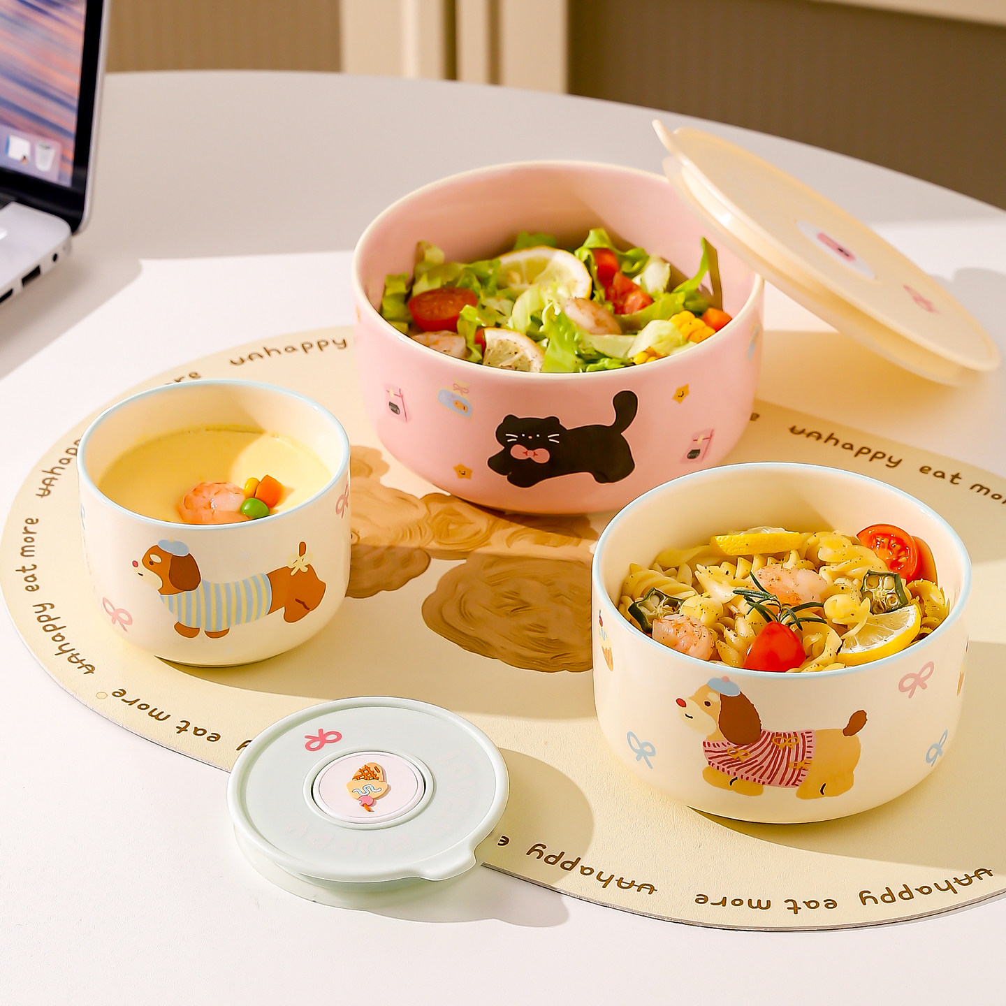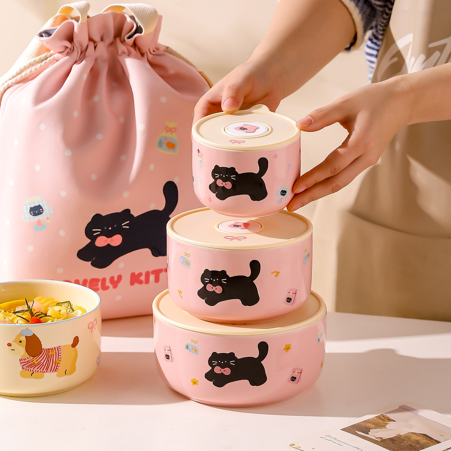 川岛屋可爱陶瓷饭盒上班族微波炉加热专用保鲜盒带盖碗密封便当盒