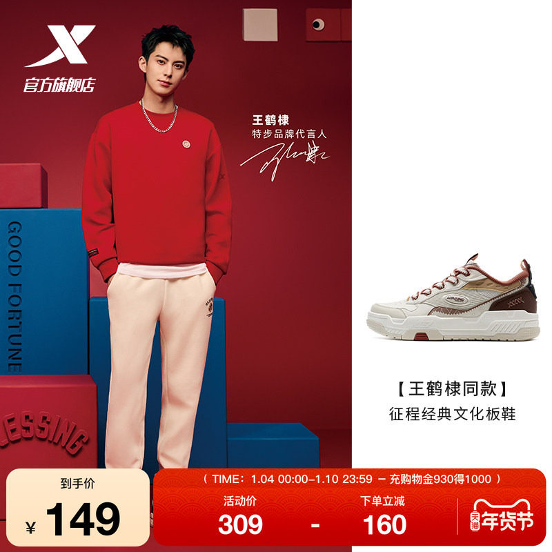 【王鹤棣同款】特步征程情侣板鞋冬季革面保暖男鞋休闲鞋运动鞋女