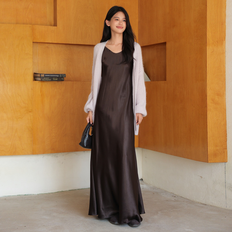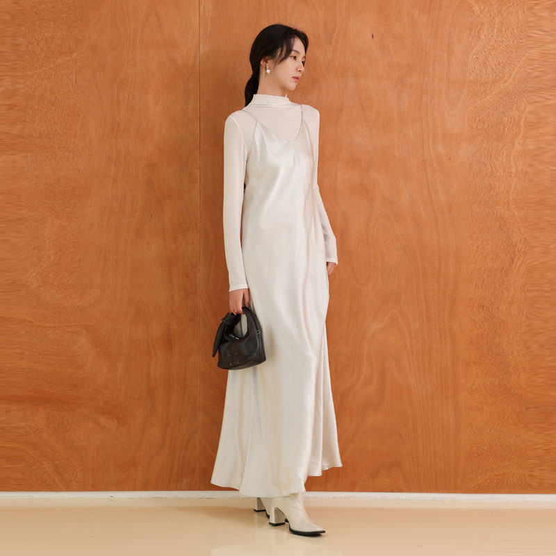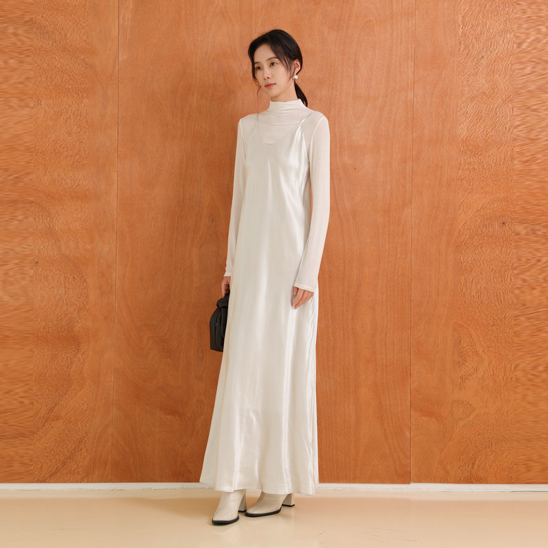AIRIQI商场同款25秋新款优雅简约气质柔软吊带连衣裙女AH53LQ085