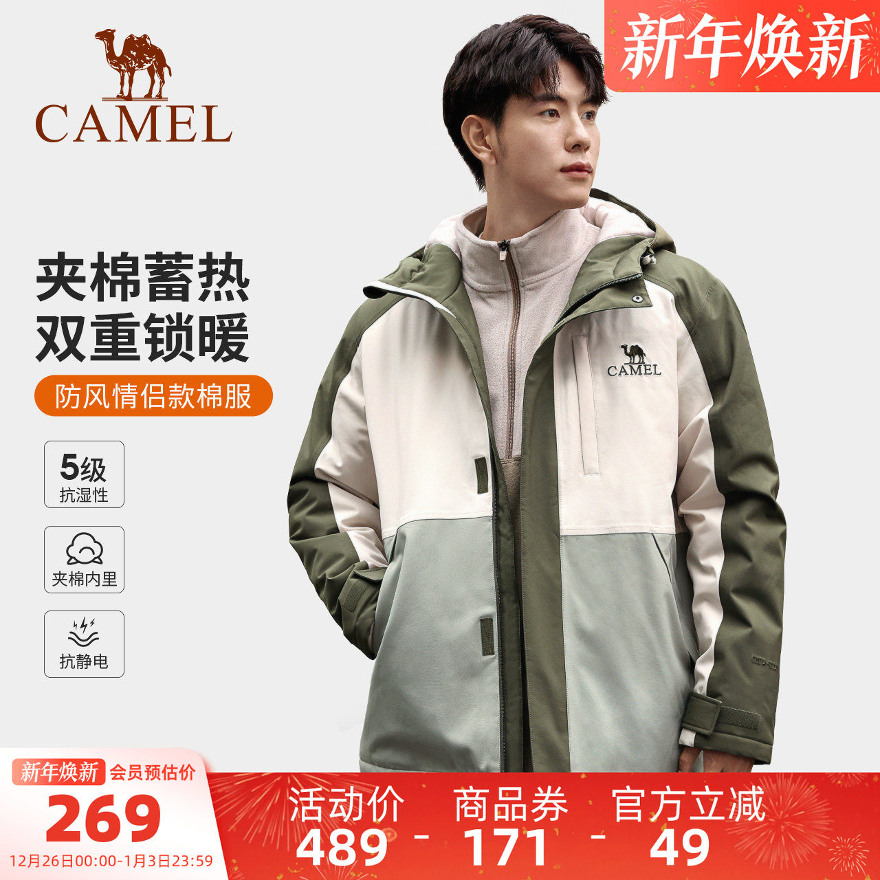 骆驼男装棉袄冬男进藏穿搭登山服AK80硬壳防水防风户外夹克外套