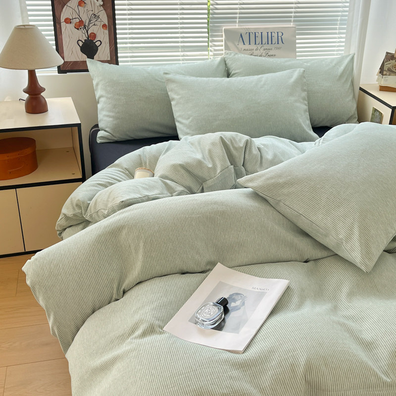 A类无印风床上四件套全棉纯棉新款床单被套罩床笠学生宿舍三件套4
