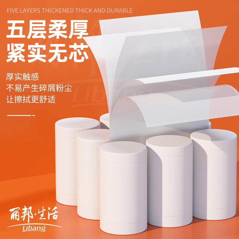 丽邦卷纸卫生纸14卷五层家用纸巾实惠装无芯卷筒纸厕纸厕所手纸