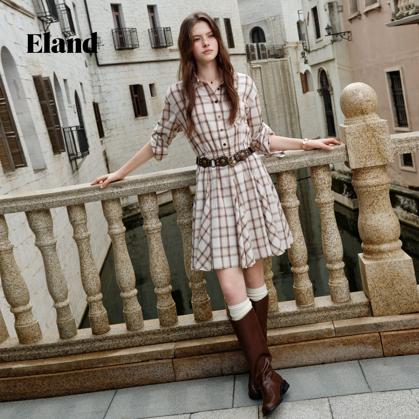【100%莱赛尔】Eland衣恋连衣裙女法式气质衬衫裙2025秋季新款