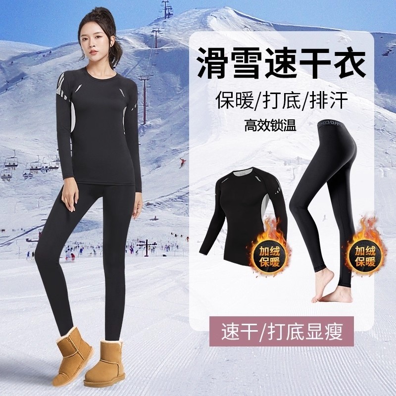 滑雪速干衣女保暖打底衣裤冬季加绒户外登山健身东北运动套装压缩