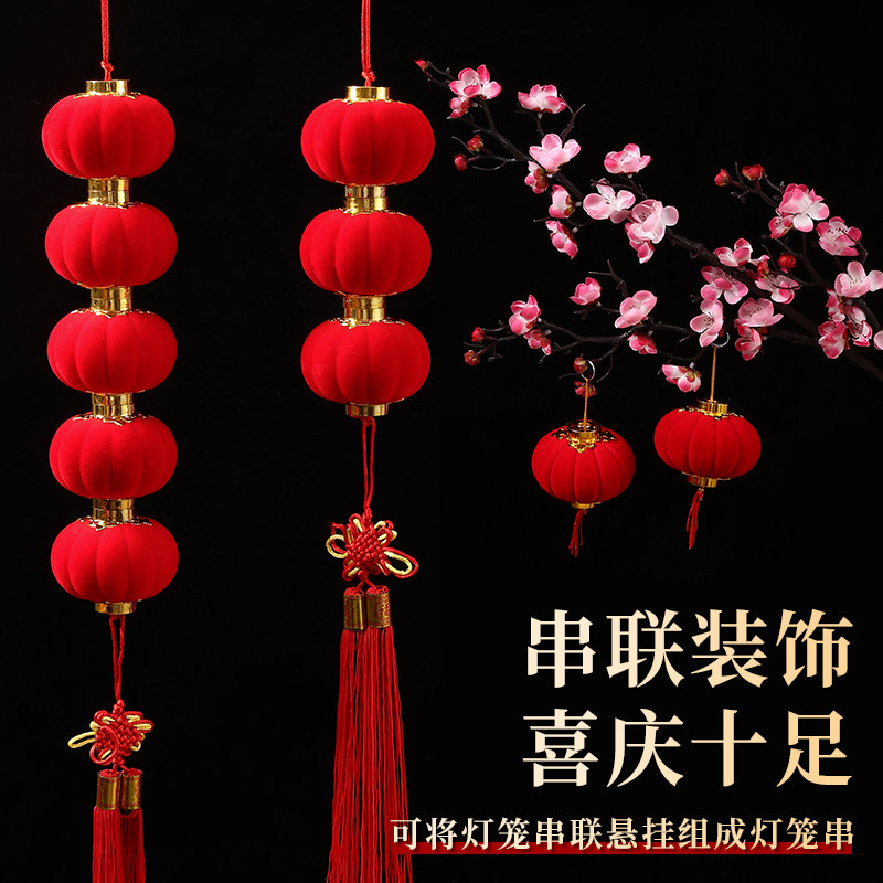 小灯笼串户外连串挂饰大红植绒灯笼节日喜庆装饰元旦场景布置灯笼