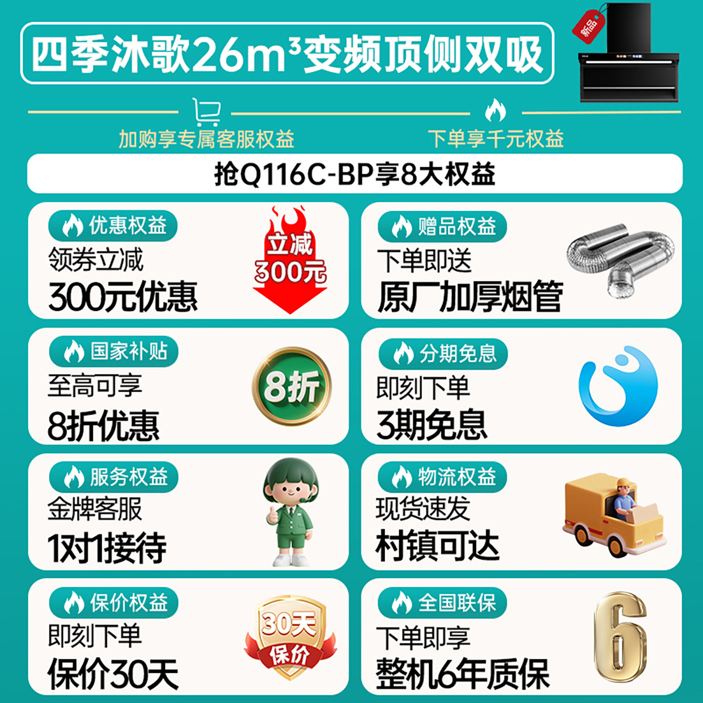 四季沐歌顶侧双吸抽油烟机家用大吸力变频厨房油烟机7字自动清洗