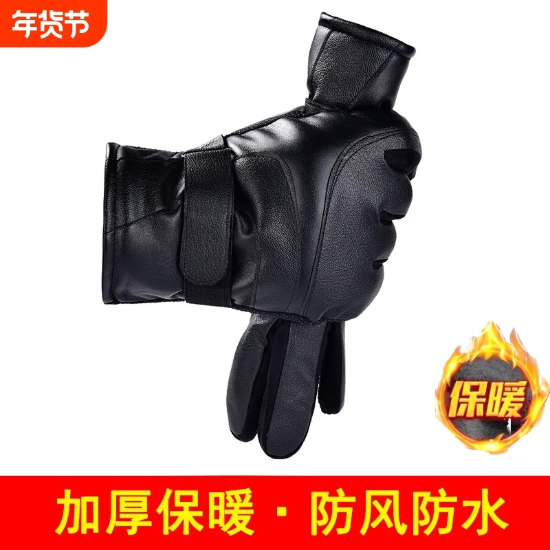 皮手套男冬季骑行加绒加厚防水保暖触屏电动摩托车女士皮防风骑车