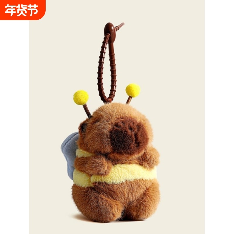 日本代购正版可爱蜜蜂卡皮巴拉包包挂件毛绒车钥匙扣书包挂饰玩偶