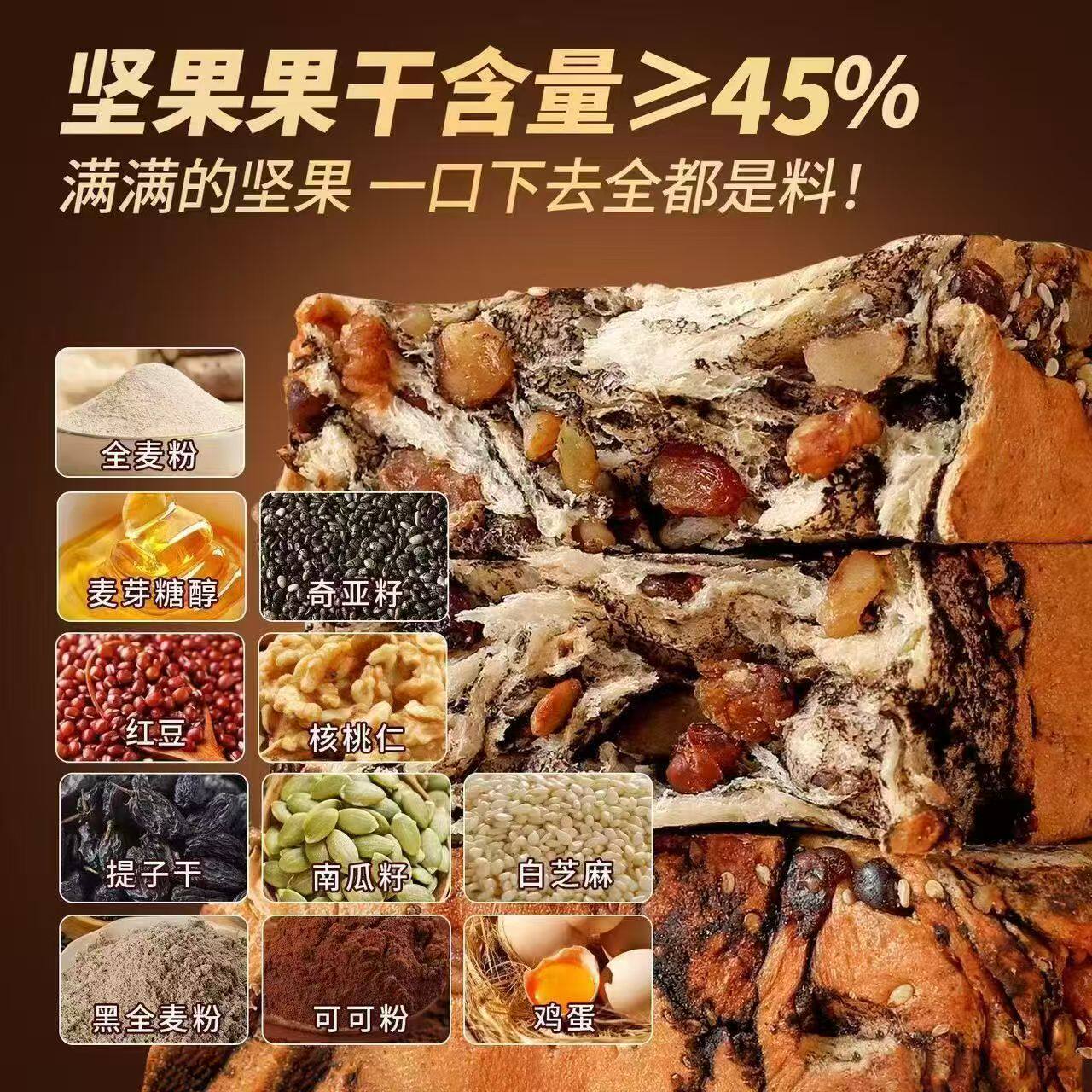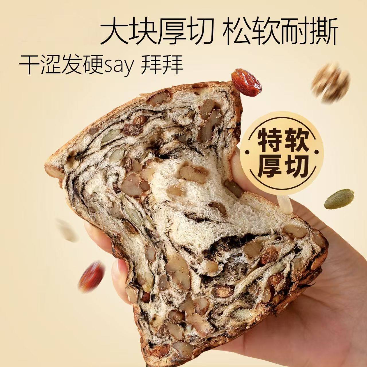 全麦面包坚果厚切吐司手撕面包无蔗糖0脂饱腹孕妇代早餐整箱零食