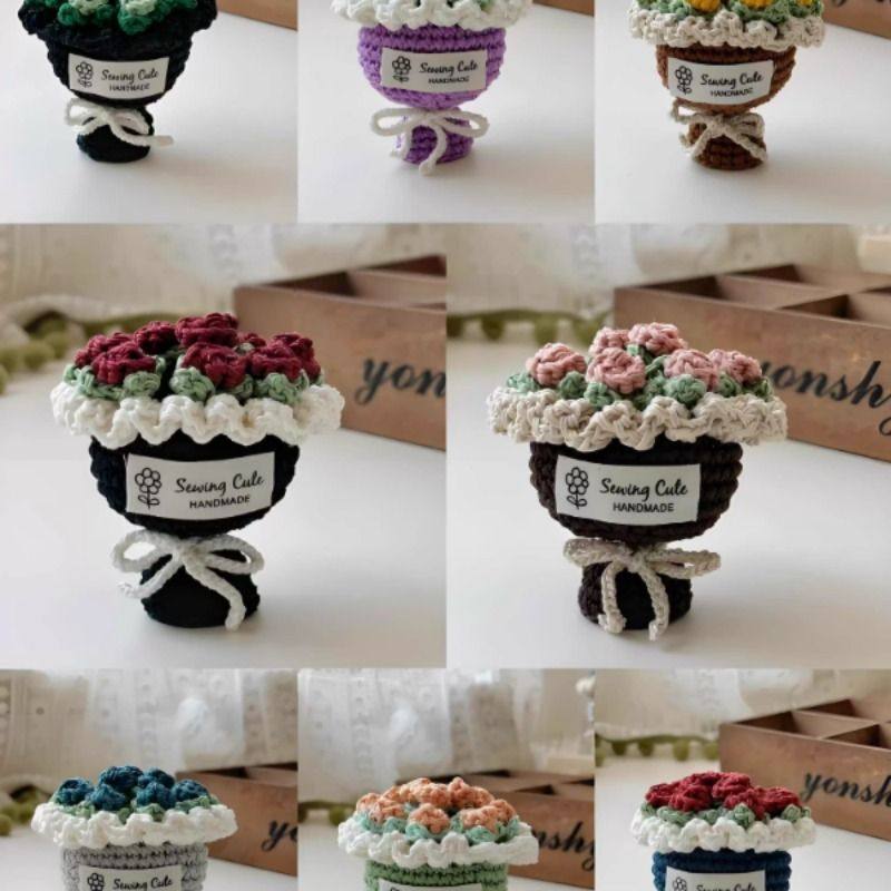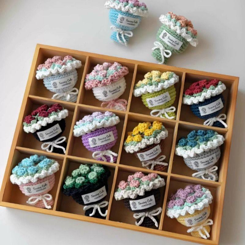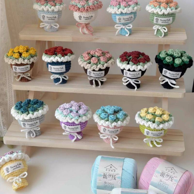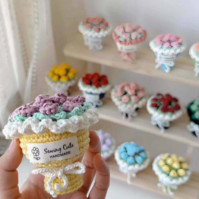 diy创意迷你小花束手捧花 手工编织毛线钥匙扣生日礼品包挂件成品