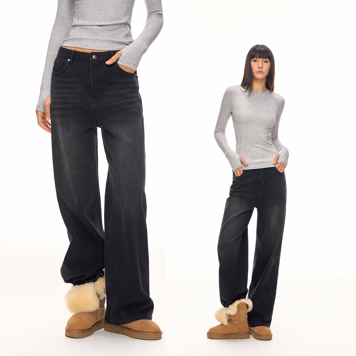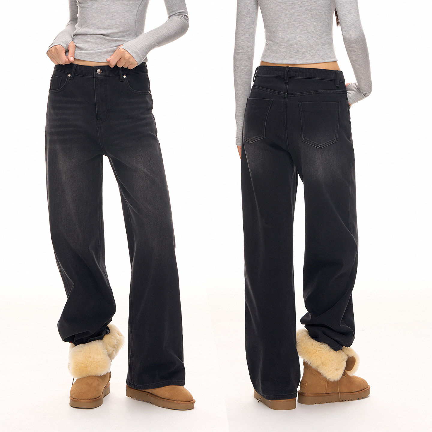 CLIMAX VISION经典基础款加绒保暖高腰显瘦水洗直筒牛仔裤长裤