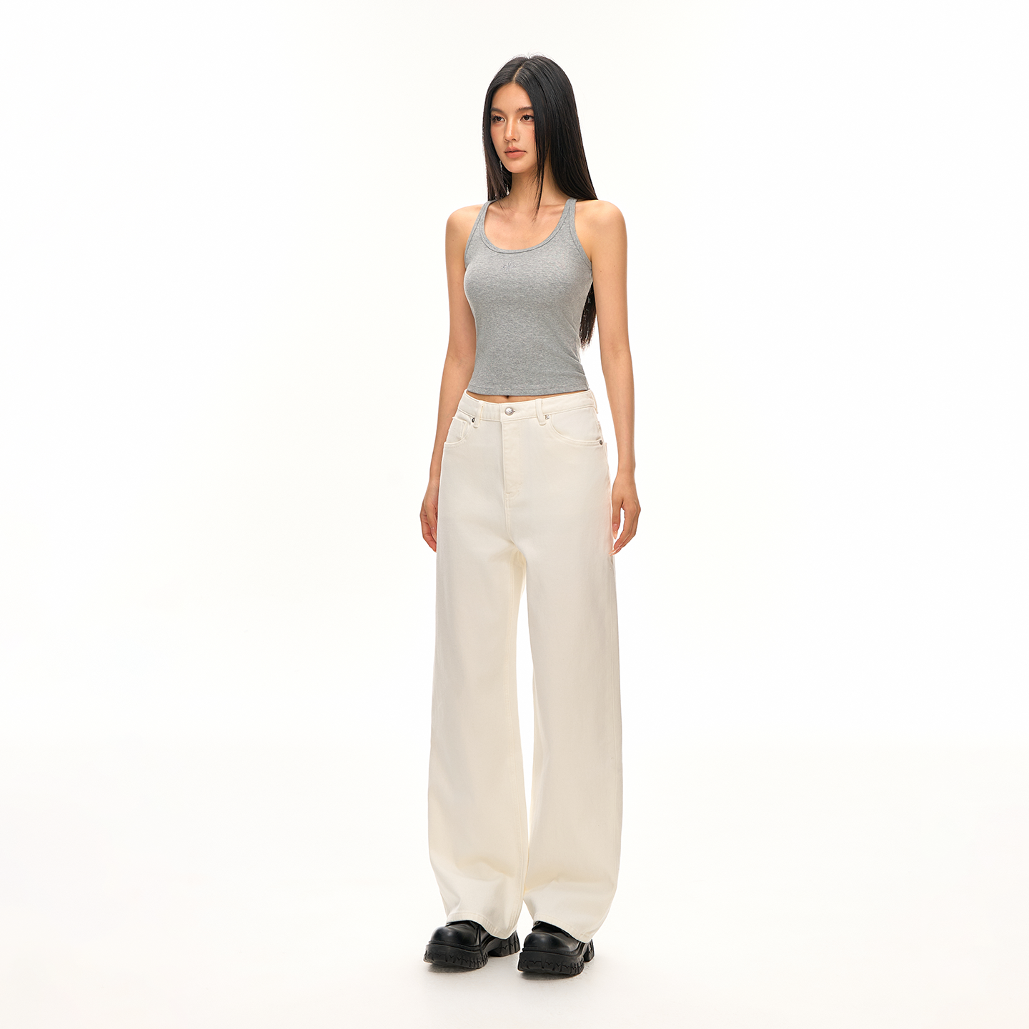 四面弹丹宁色牛仔阔腿裤25年新款宽松显瘦牛仔长裤89173