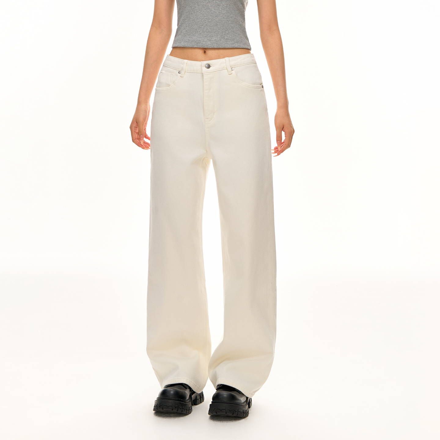 森柔牛仔|森马阔腿牛仔裤女2025秋冬白色牛仔裤简约女士高腰裤子