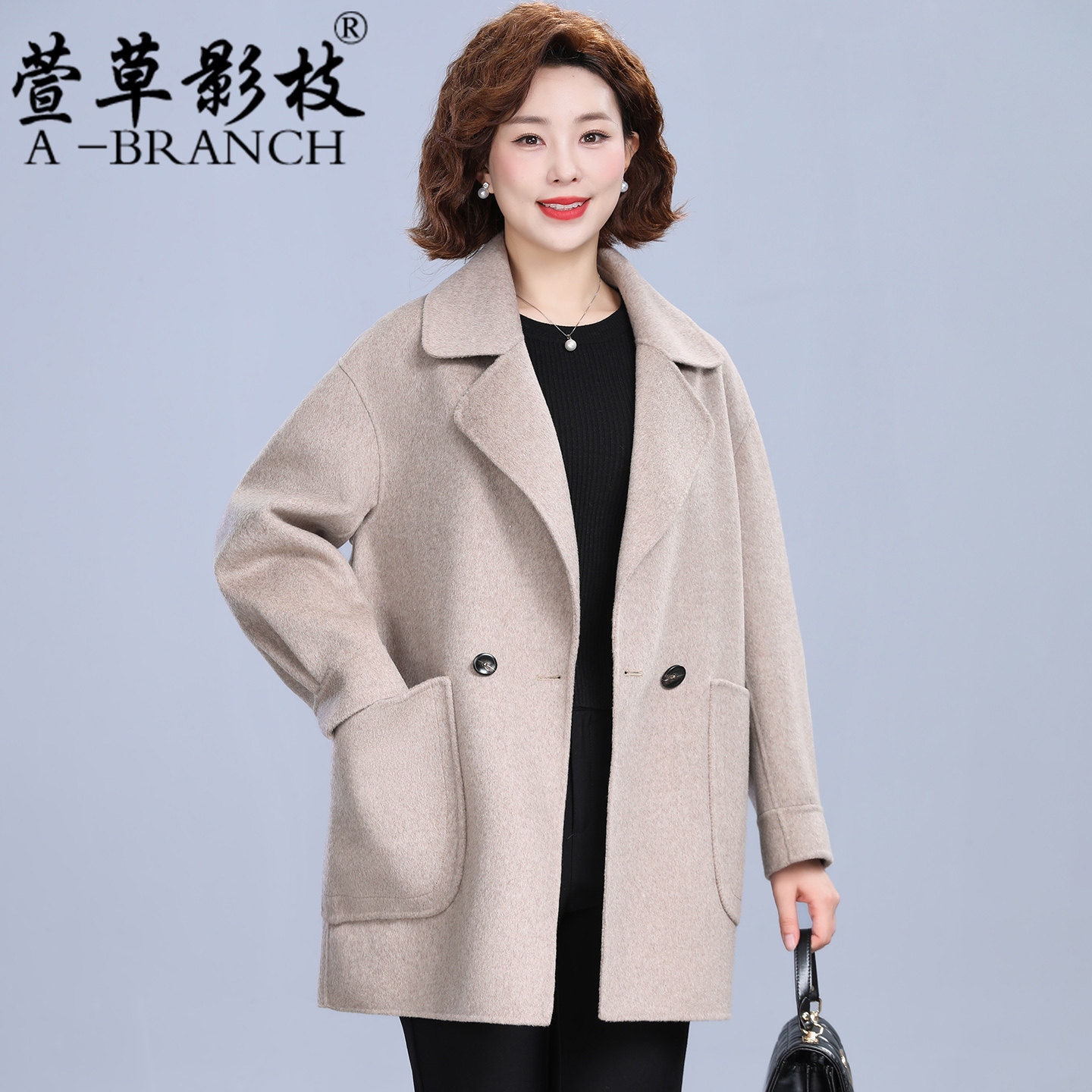 小个子妈妈双面呢零羊绒大衣女宽松2025秋冬中老年人洋气毛呢外套