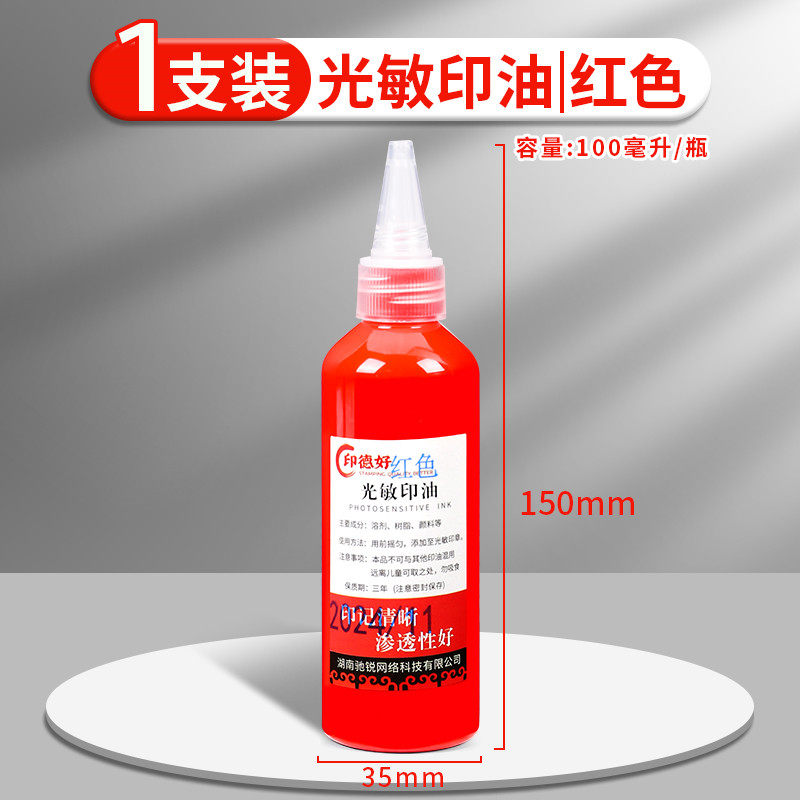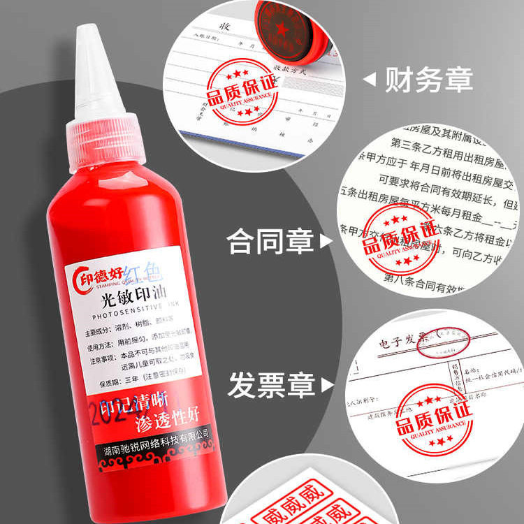 光敏印油红色100ml超大瓶印章油 财务合同发票盖章油墨速干印章油