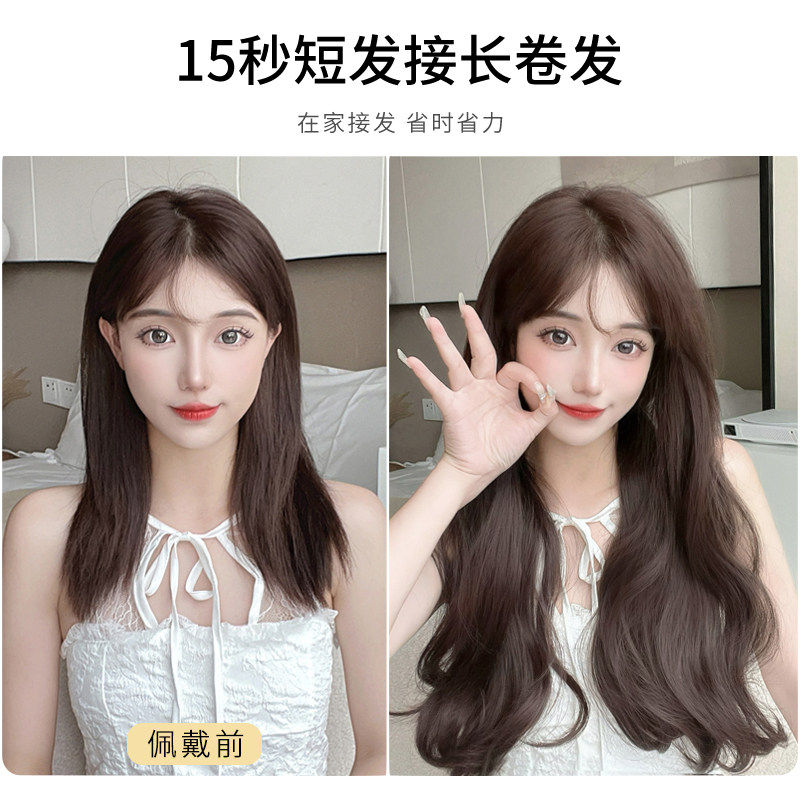 日常假发片三片式轻薄增发量蓬松微卷波浪仿真发短发过渡期接长发
