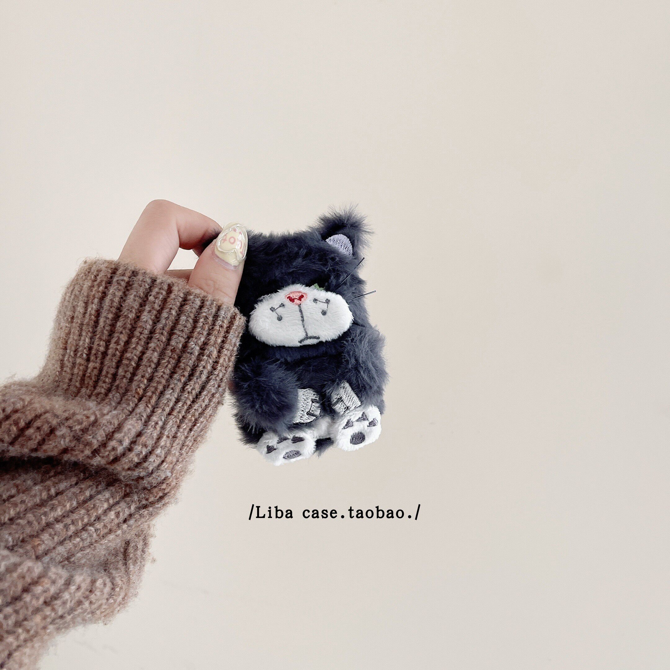 毛绒可爱路西法猫咪适用AirPods保护套新款iPod苹果耳机套秋冬2代无线蓝牙盒3代airpodspro2代小众防摔保护壳