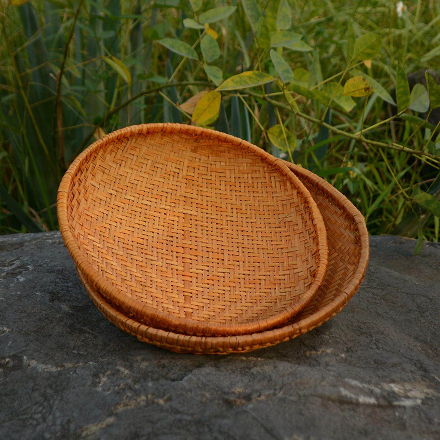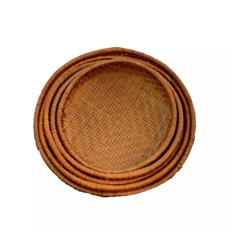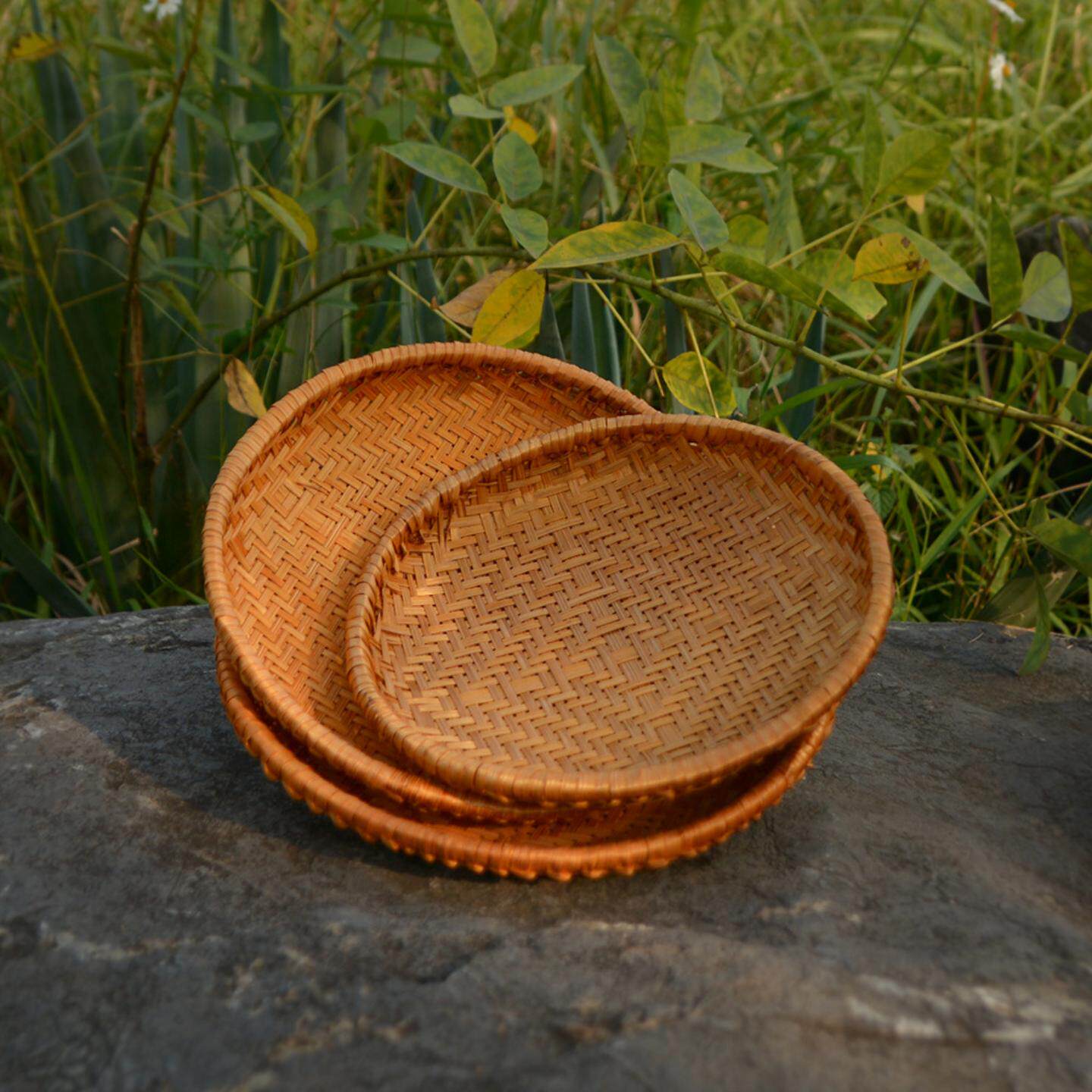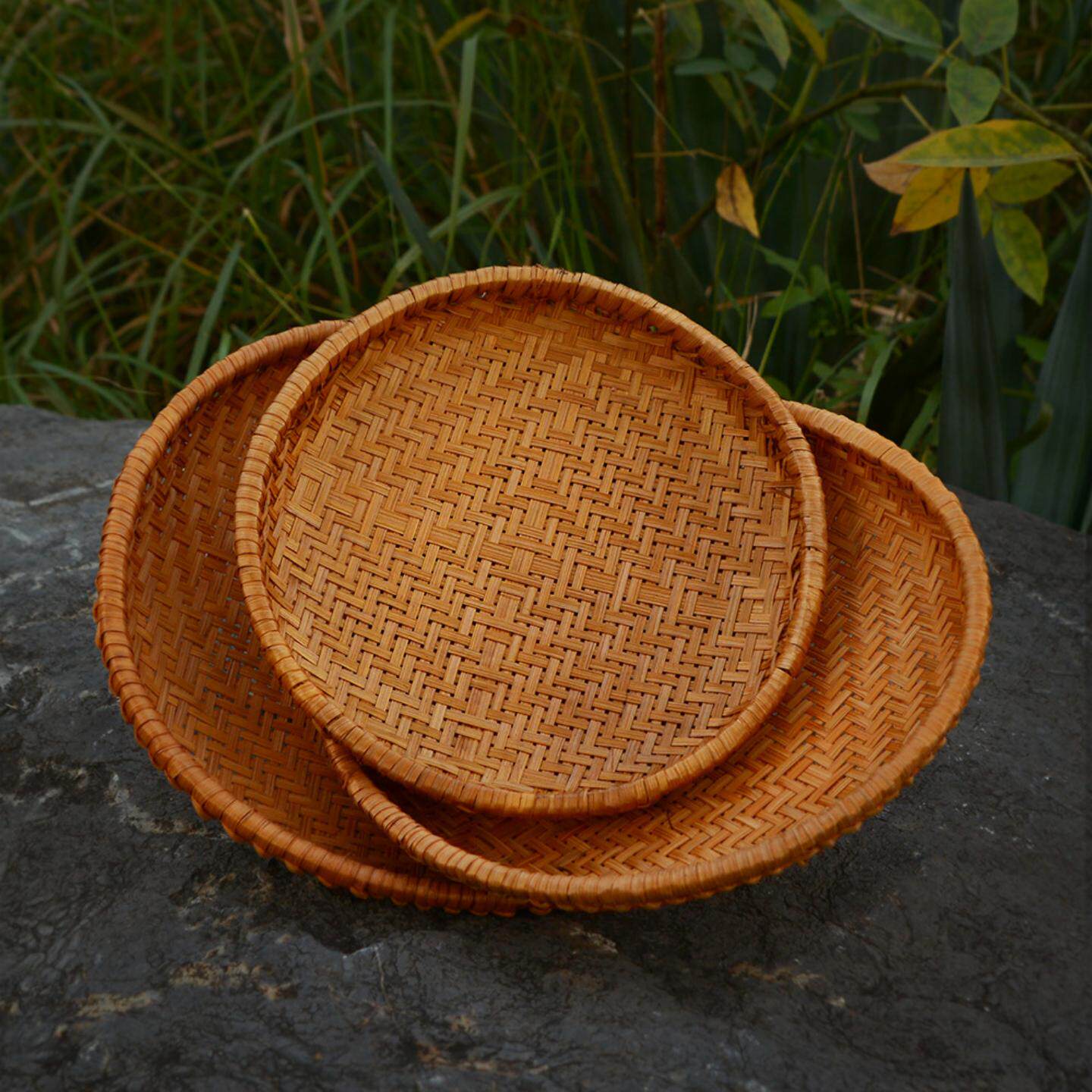 圆形烟熏竹编收纳筐手工编收家用编织收纳篮杂物储物盘点心篮藤编
