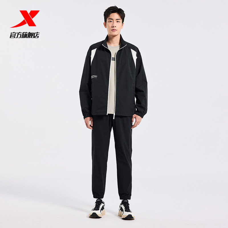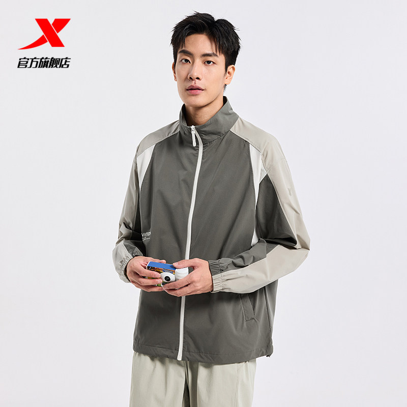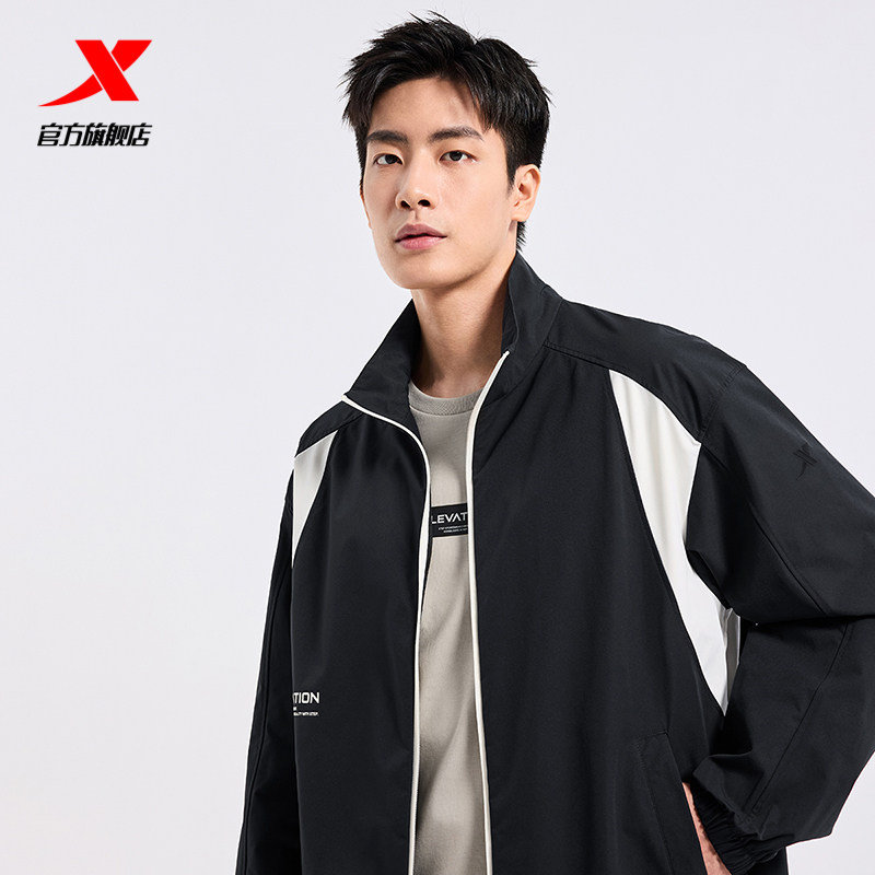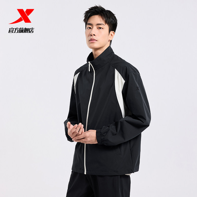 特步艺术礼赞单风衣男士2025秋冬新款百搭撞色休闲户外运动薄外套
