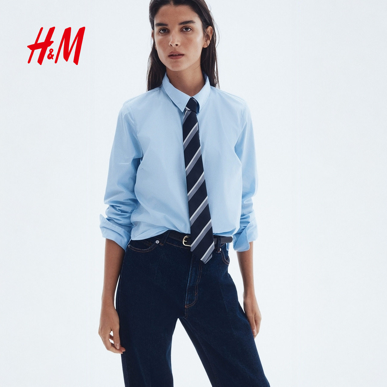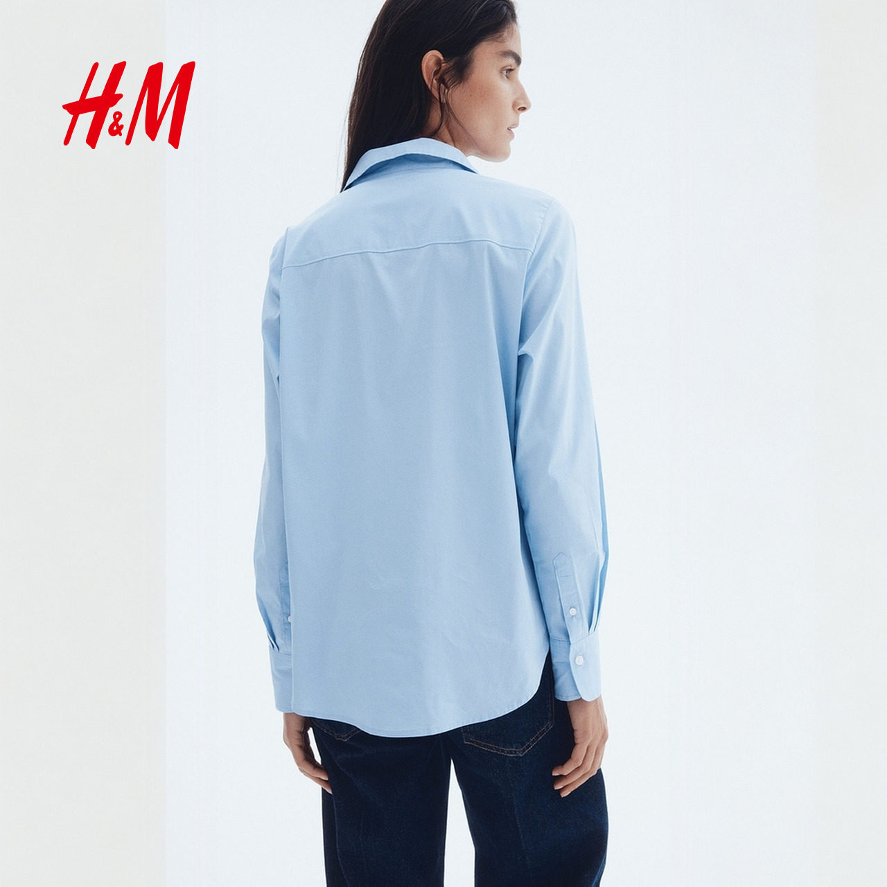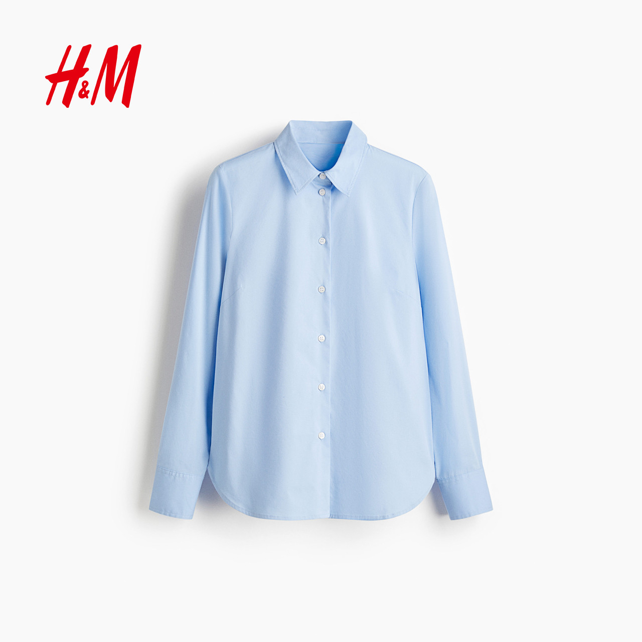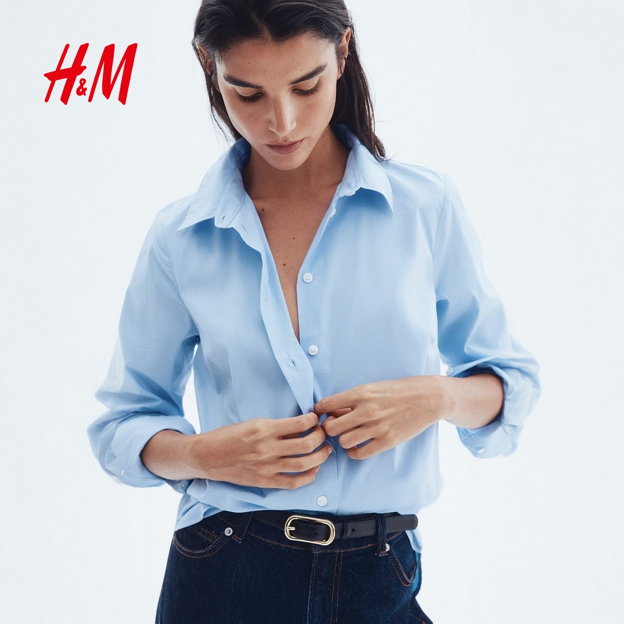 HM女装衬衫春季正肩通勤休闲气质垂感OL通勤翻领白色上衣0932278